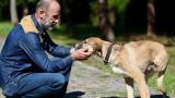 Kazada bir bacağını kaybeden köpeğe sevgiyle bakıyor
