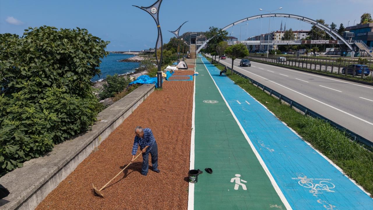 Kimi zaman tarihi Giresun evlerinin önünde, kimi zaman da yol kenarlarında kurutulan fındıklar, şehrin yaz mevsimindeki geleneksel manzaralarından birini oluşturuyor.