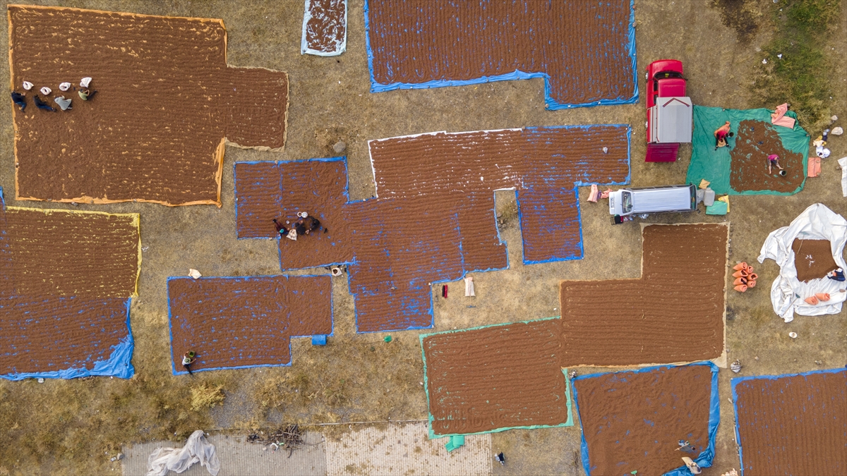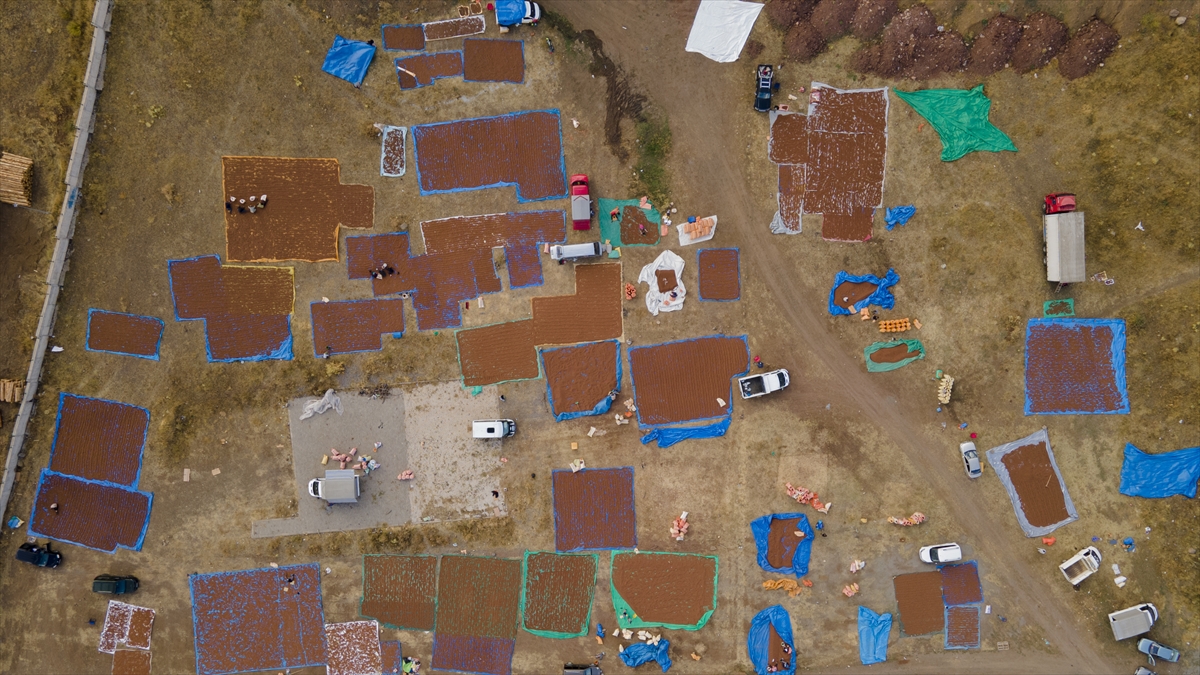 İlçedeki güneşli ve kuru havayı fırsat bilen üreticiler, geniş alanlara serdikleri ürünlerini kurutuyor.