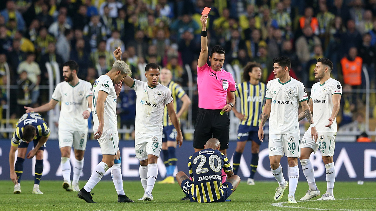 Fenerbahçe`de Pedro 40. dakikada ikinci sarıdan kırmızı kart görerek takımını 10 kişi bıraktı. İtalyan futbolcu ilk sarı kartını 13. dakikada görmüştü. Öte yandan sarı lacivertliler Süper Lig`de bu sezon üçüncü kez kırmızı kart gördü. (Konyaspor - Valencia, Sivasspor - Batshuayi, Giresunspor - Pedro)
