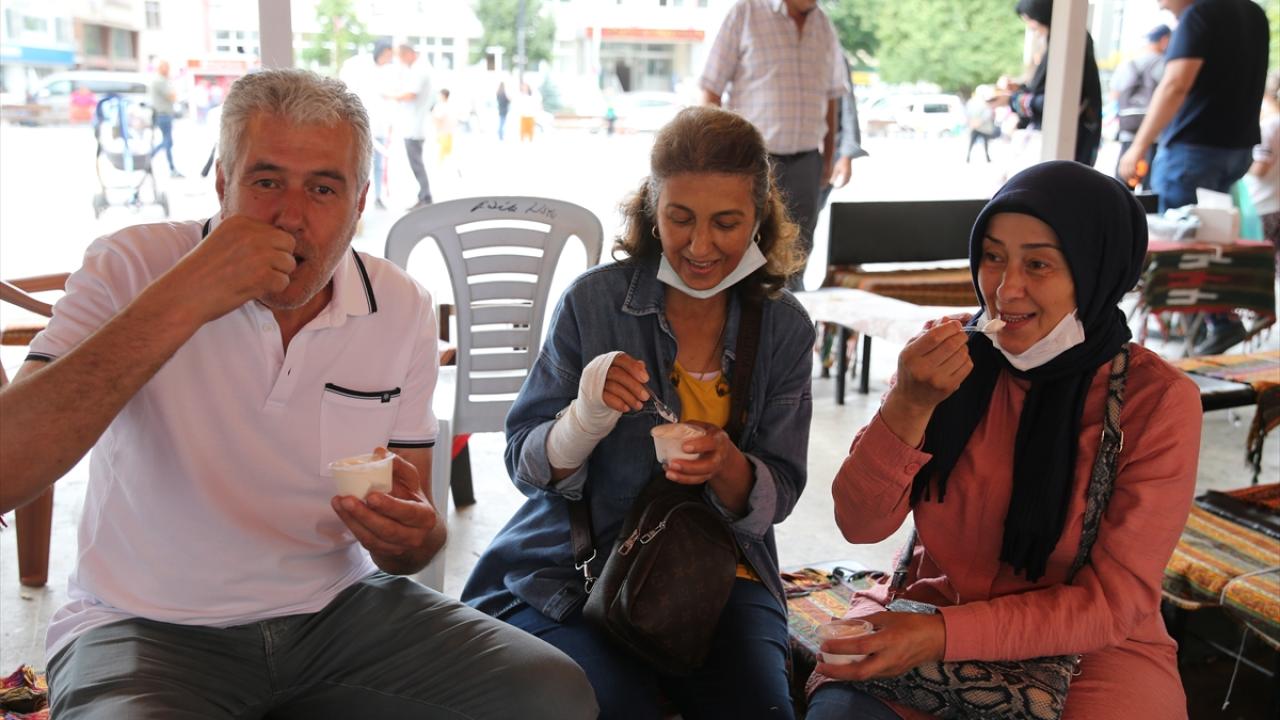 Yörenin aranın lezzetlerinden Görele dondurması, yakınları adına hayır yapmak isteyen kişilerce ücreti ödenerek plastik kaselerde vatandaşlara dağıtılıyor.