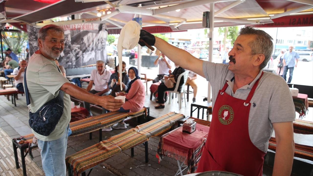 Süt, şeker, salep ve meyan kökü kullanılarak hazırlanan Görele dondurması, yaz mevsiminde bolca tüketilmesinin yanı sıra bazı vatandaşlarca hayra dağıtılıyor.