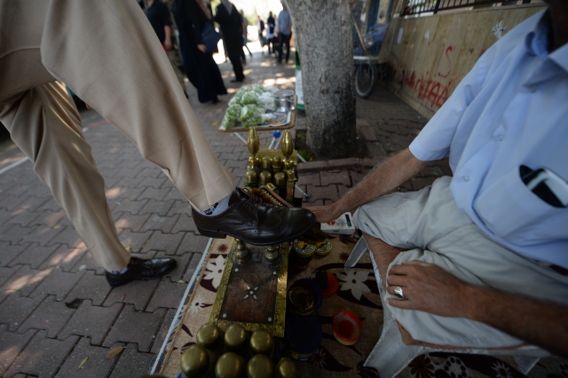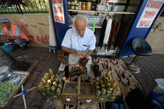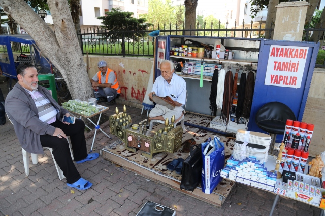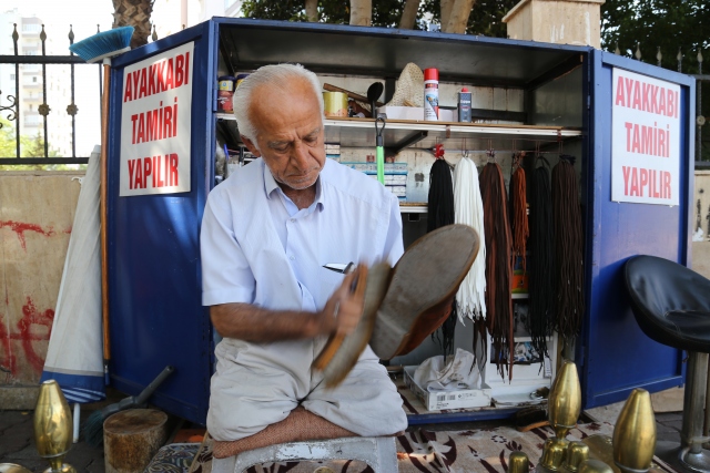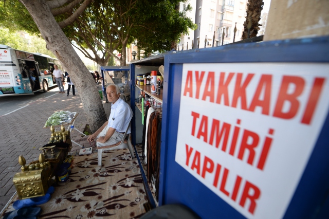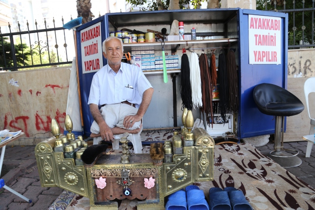 Antalya'da damar tıkanıklığı nedeniyle iki ayağı düz üstünden kesilen Ramazan Tosun, bir daha giyemeyeceği ayakkabıların tamirini ve boyasını yaparak geçimini sağlıyor.