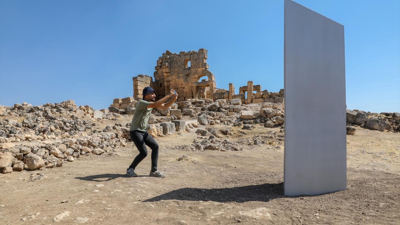 2-4 Eylül’de Zerzevan Kalesi’nde gerçekleştirilecek Gökyüzü Gözlem Etkinliği’nin tanıtımı için kale yakınlarına dikilen monolit, yöre halkı tarafından şaşkınlıkla karşılandı.