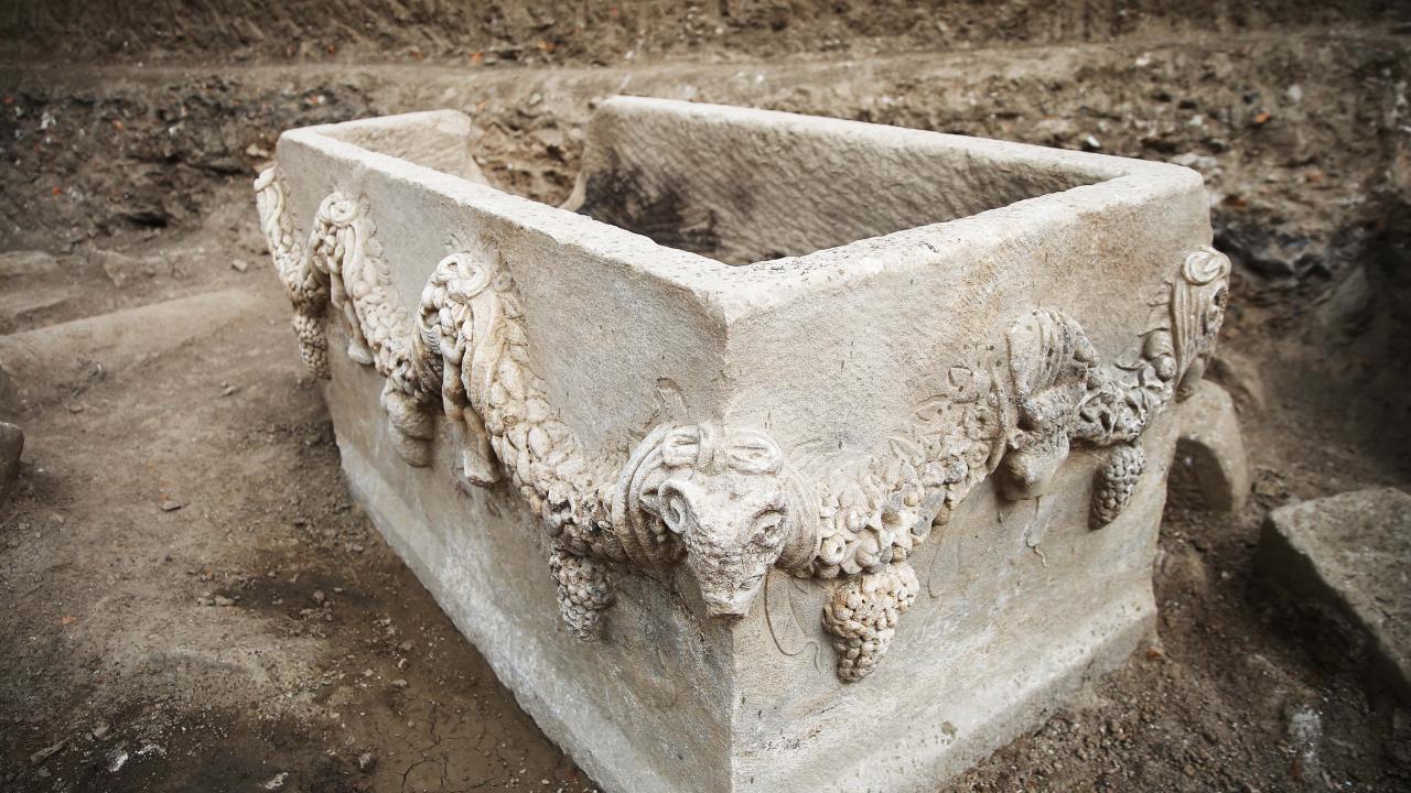 "Yaklaşık 2 bin yıl öncesinin zenginliğini, ihtişamını, gösterişliliğinin hepsini burada görmek mümkün. Bitkiler, özellikle girlandlar çok güzel ve böyle dolu dolu canlı işlenmiş. Köşelerinde koç başları, etrafından kozalak, asma ve zeytin yaprakları, üzüm, nar ve haşhaş gibi meyveler betimlenmiş durumda. Köşelerinde bulunan koç başlarına baktığınızda bile o dönemin zenginliğini ve ihtişamını anlamanız mümkün. Dar kenarlar ve orta kısımlarında bulunan boğa başları, tüm figürleri tamamlayan detaylardan bazıları. Bölgede kazı çalışması devam ediyor. Her kazma bizim için yeni umut, yeni eser ve güzel sonuçlar olabilir."