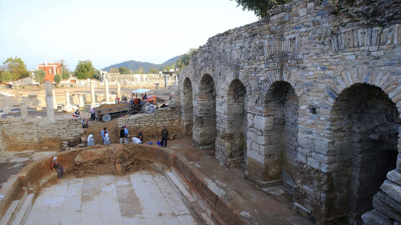 Hamamın frigidarium kısmında, havuzlar ve çevresindeki diğer bölümlerin nişleri ile açığa çıktığını anlatan Söğüt, alanda antik dönemde yıkıldığı şekilde, dolu halinde üst örtüsüyle ilgili malzemeler bulduklarını, hamamın jimnastik ve spor bölümleri olan palestranın güney portikteki (üstü örtülü, önü sütunlu açık galeri) çalışmalarına ise devam ettiklerini ifade etti.