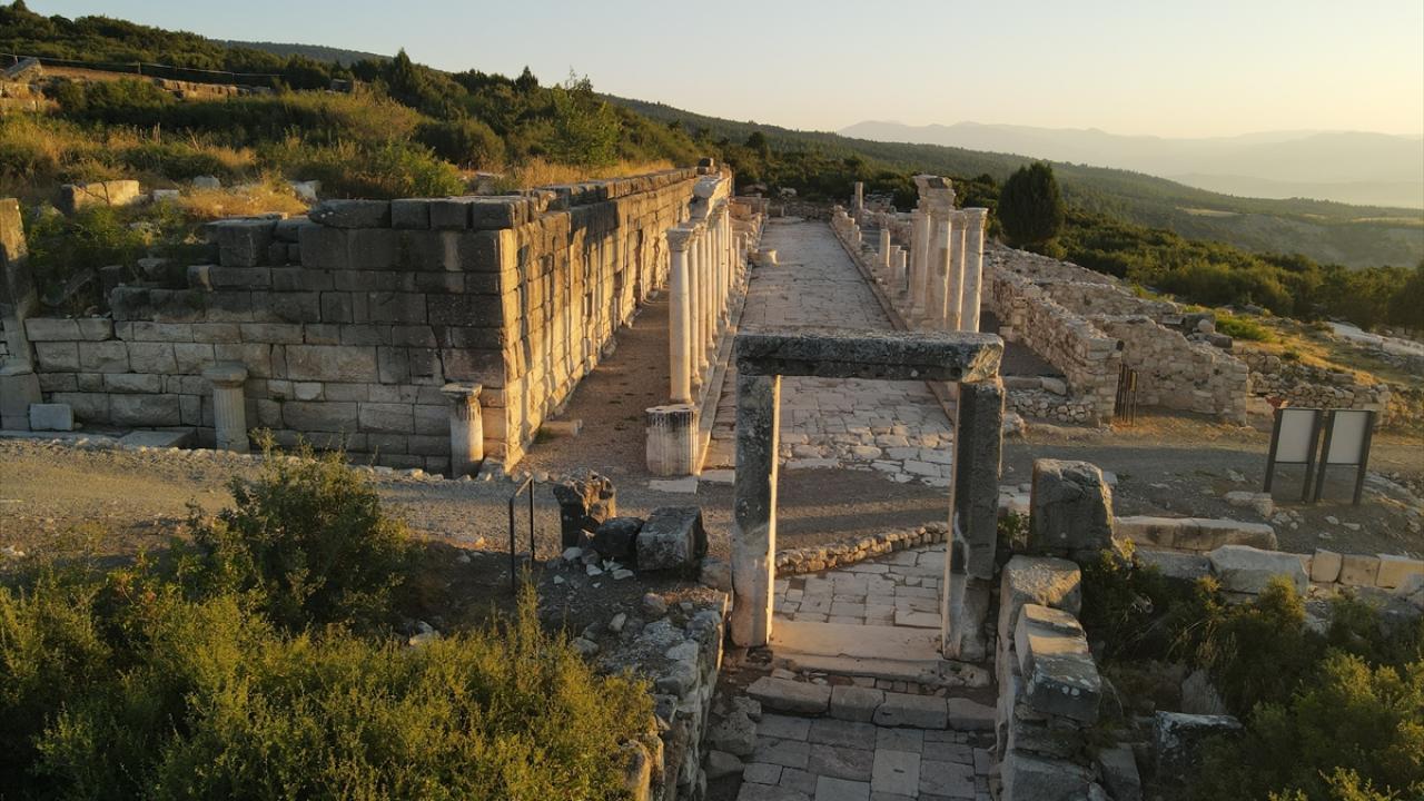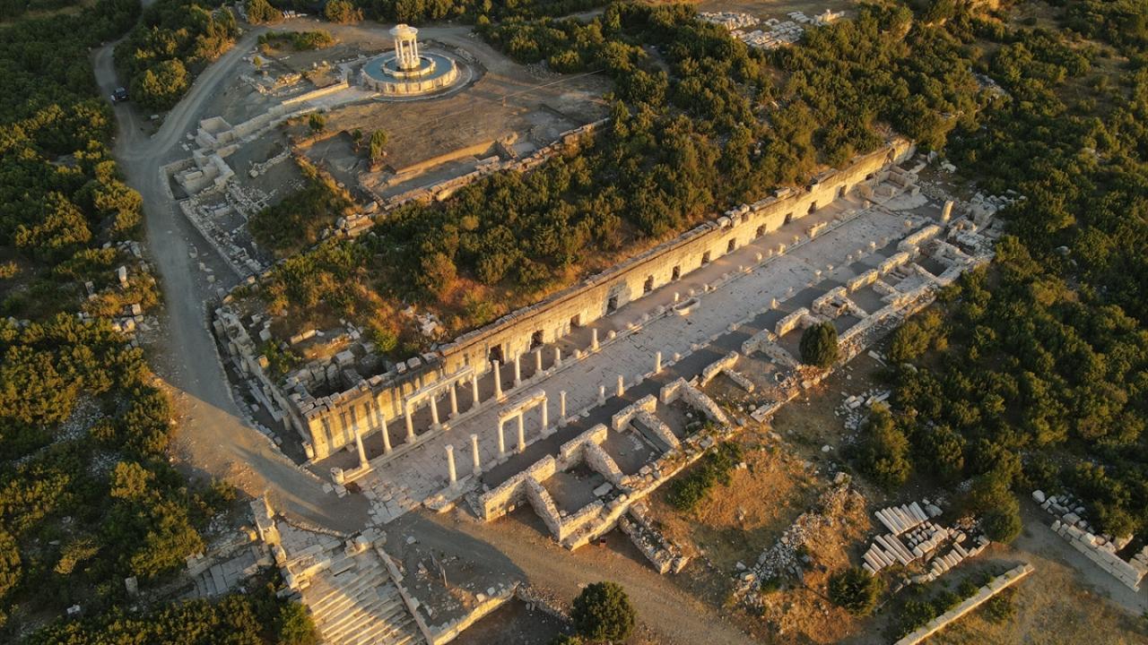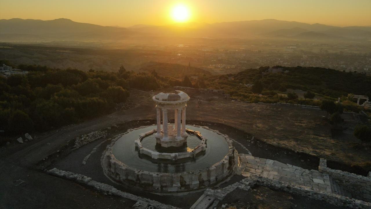 Türkiye`de antik döneme ilişkin en uzun gladyatör frizlerinin çıkarıldığı, Roma İmparatorluğu döneminde gladyatör dövüşleriyle ünlü antik kent, gün doğumunda dron ile görüntülendi.