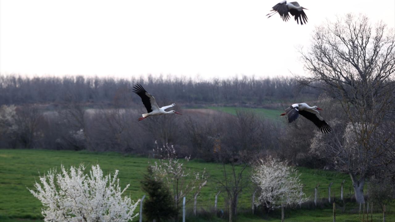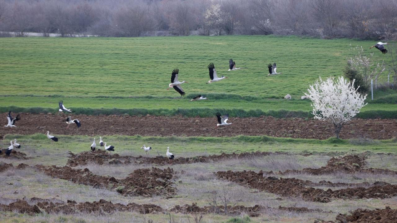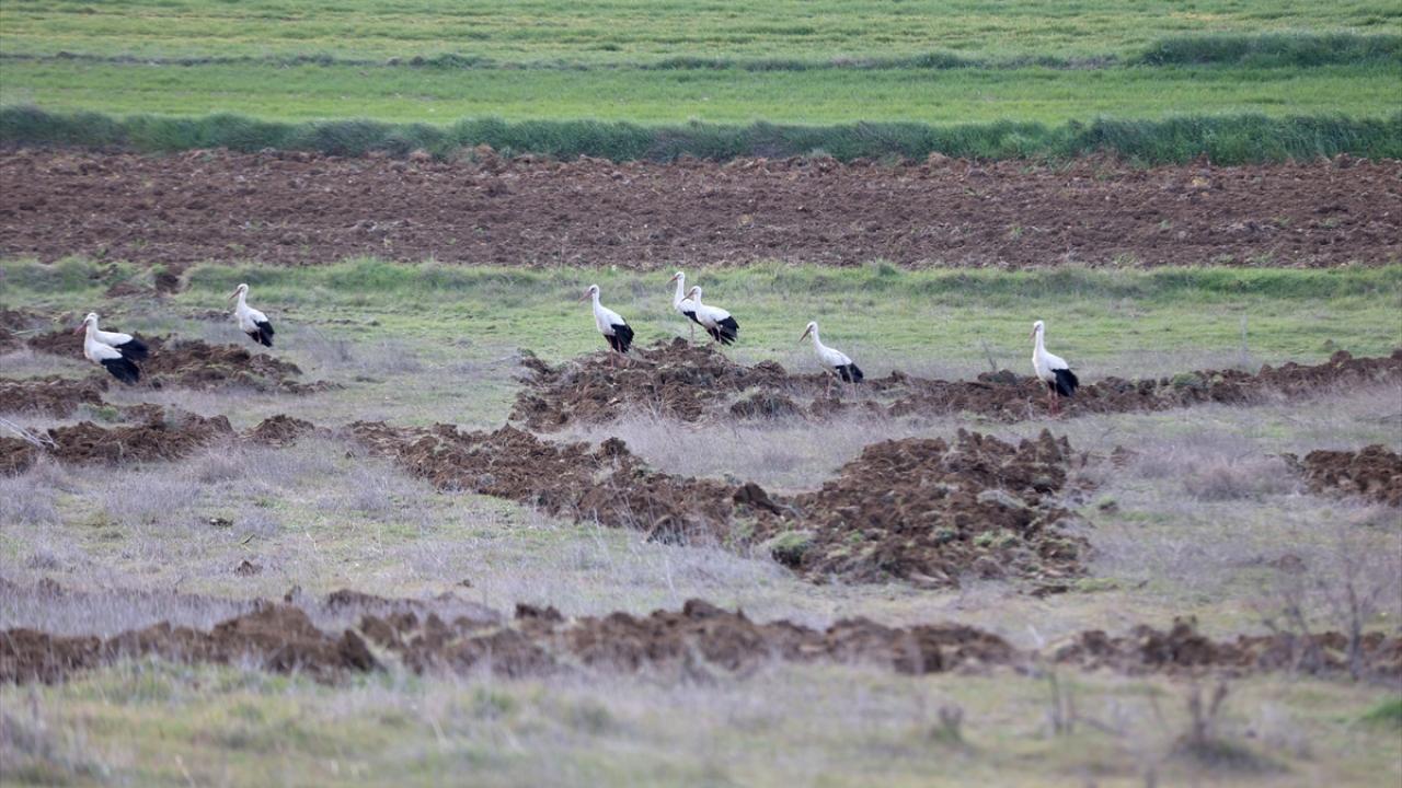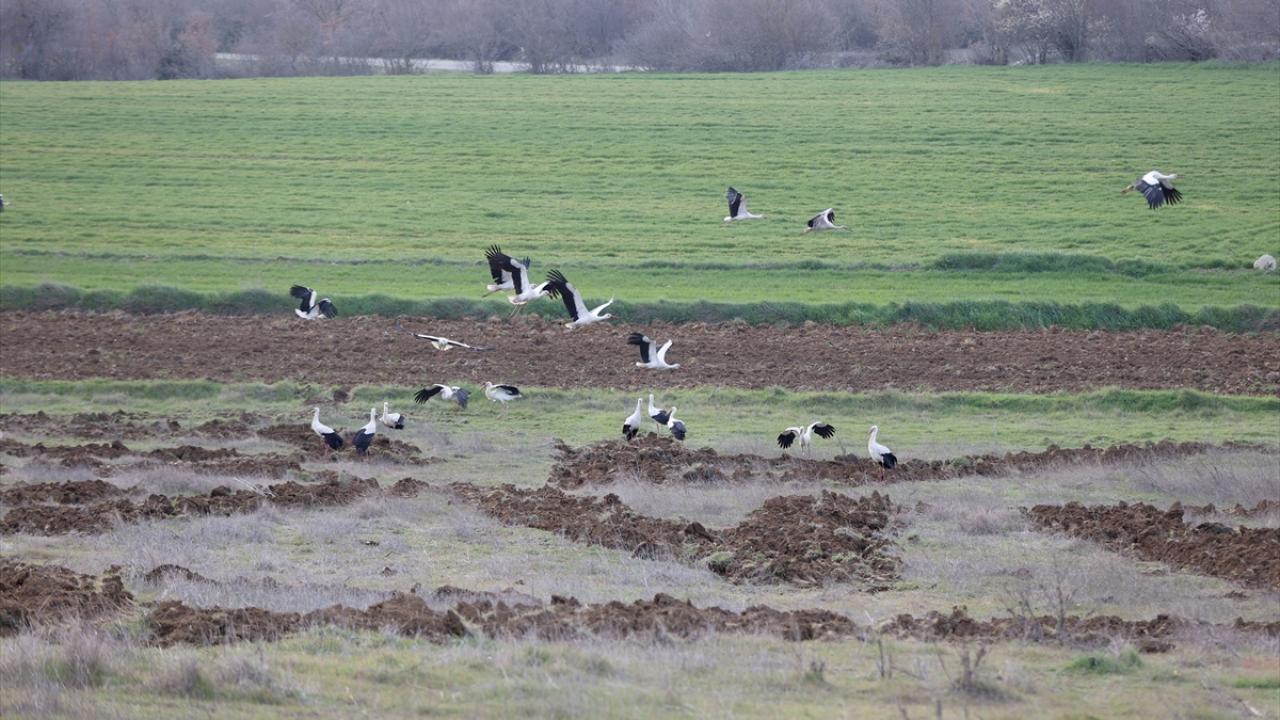 Türkiye üzerinden geçen göç rotasını kullanan leylekler, Trakya`da kısa süreli konaklayarak yolculuklarını sürdürüyor.