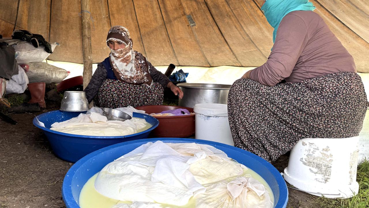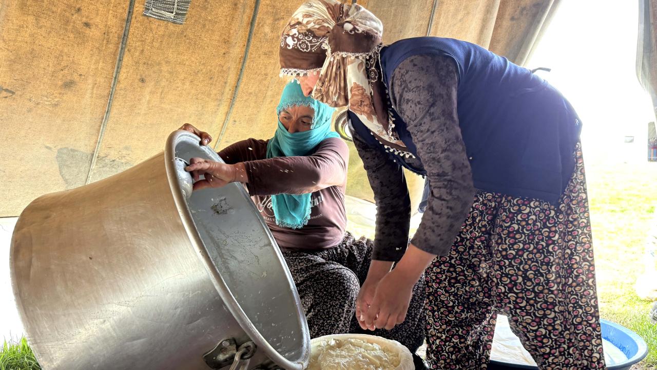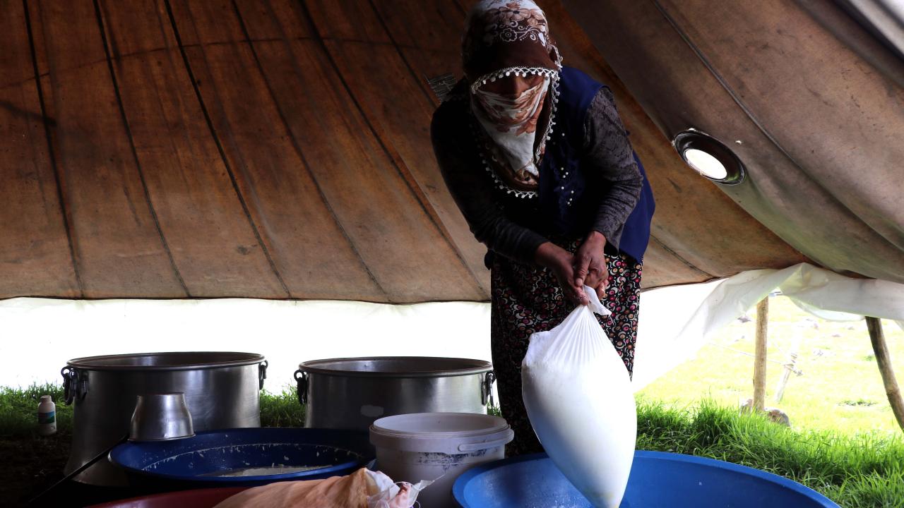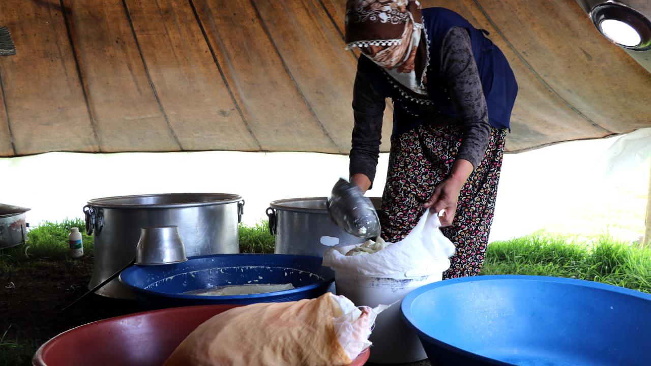 Hayvancılığa adadıkları yaşamlarını yaz kış demeden yollarda ve çadırda geçiren kadınlar emekleriyle sektöre de önemli katkı sağlıyor.