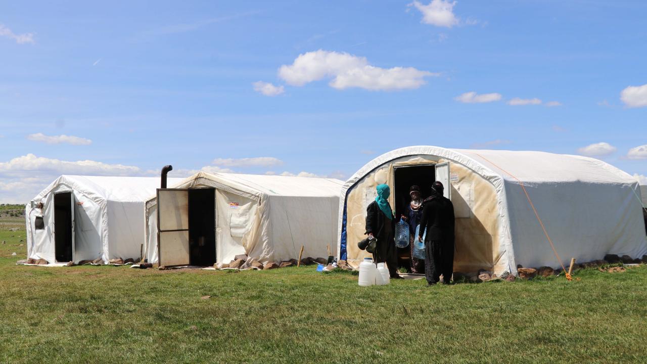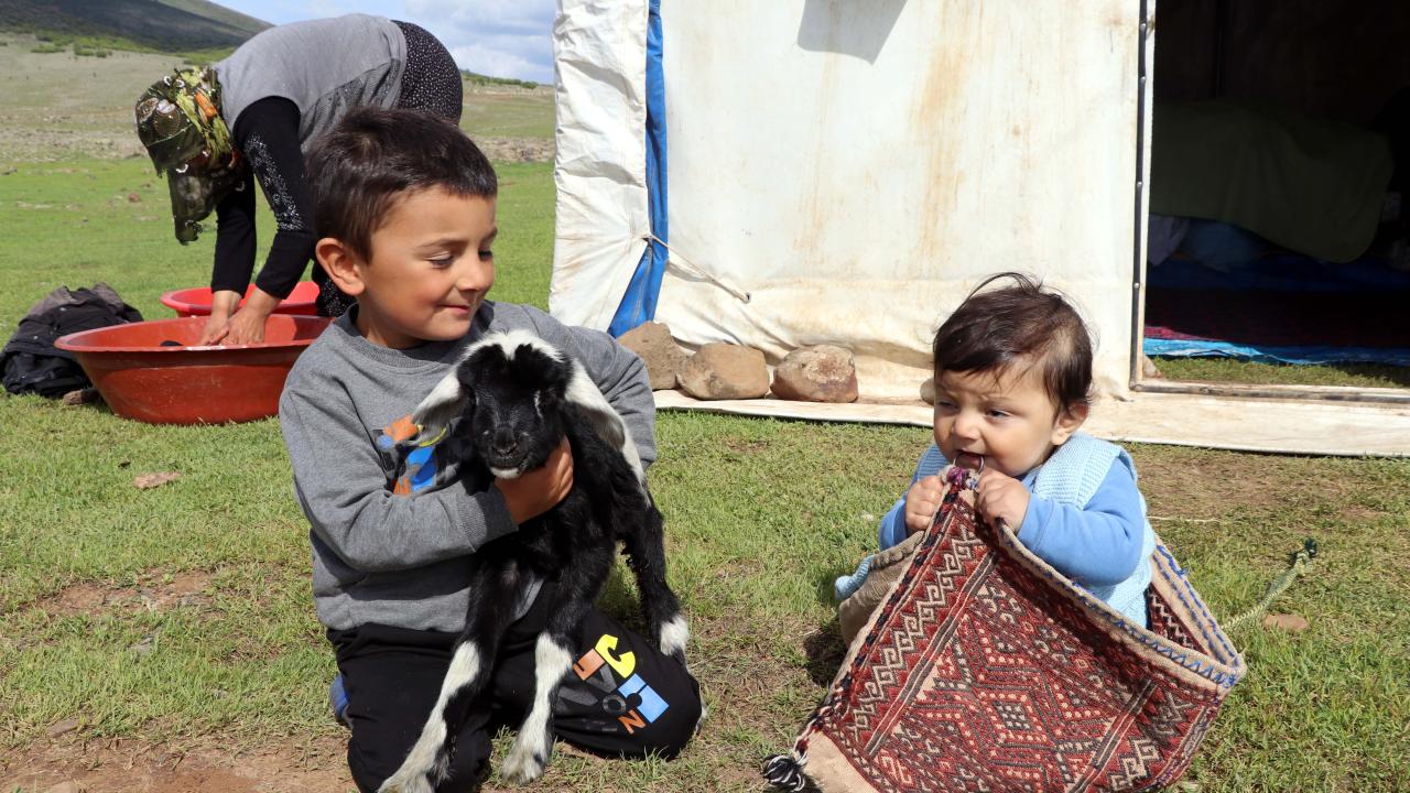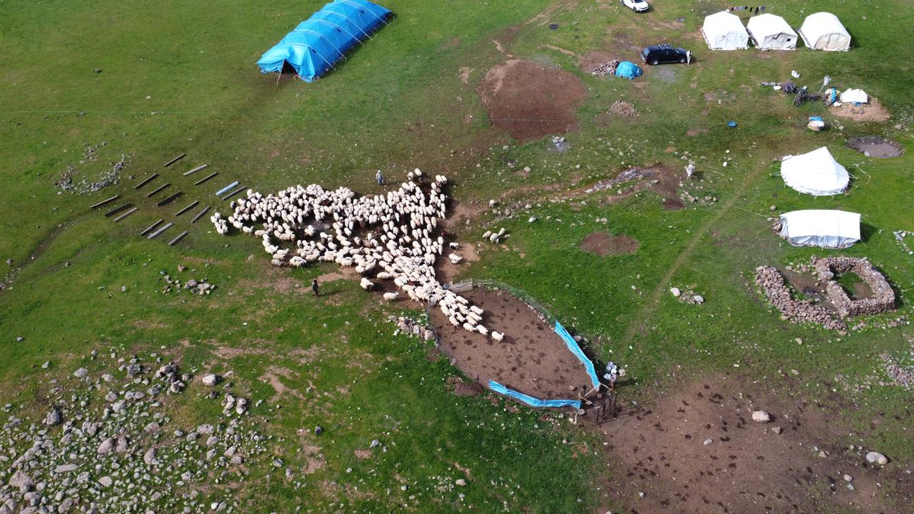 Sürekli yaylalarda, çadırlarda yaşadıklarını anlatan Büyük, "Yaşam şartlarımız zor. Yağmur, kimi zaman da kar altında çalışıyor, koyunlarla uğraşıyoruz. Çocuklarımız okulda biz buradayız. Onlara da hasret kalıyoruz. 12 ayımız çadırlarda geçiyor." diye konuştu.