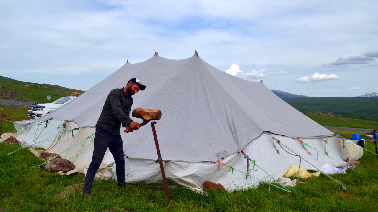 Küçükbaş ve büyükbaş hayvanların otlaklara serilmesiyle oluşan manzara eşliğinde günlerini geçiren göçerler, yaylada elektrik ve şebeke hattı olmadan doğal şartlarda yaşam sürüyor.