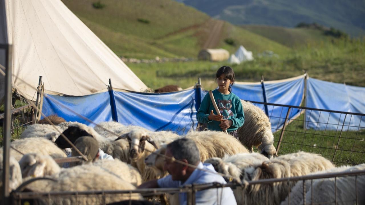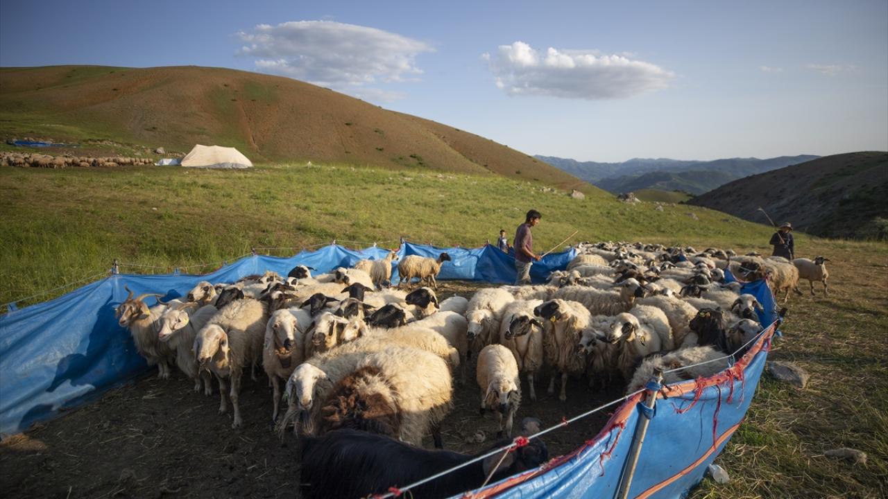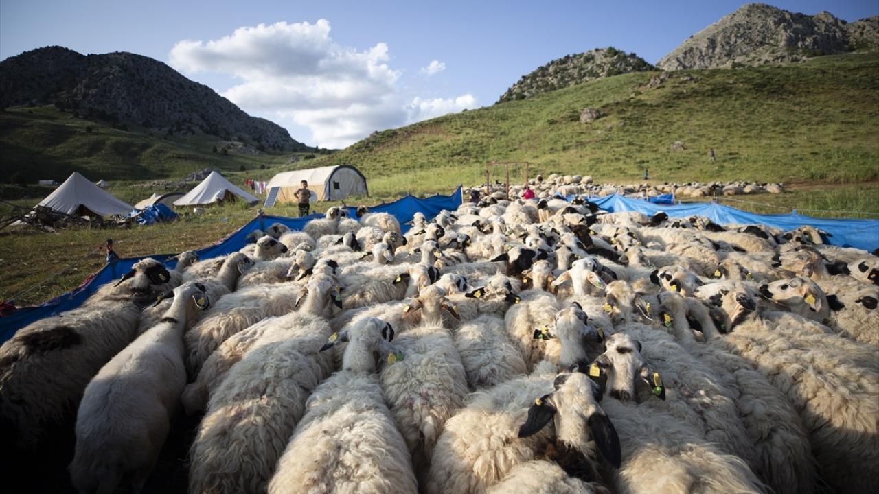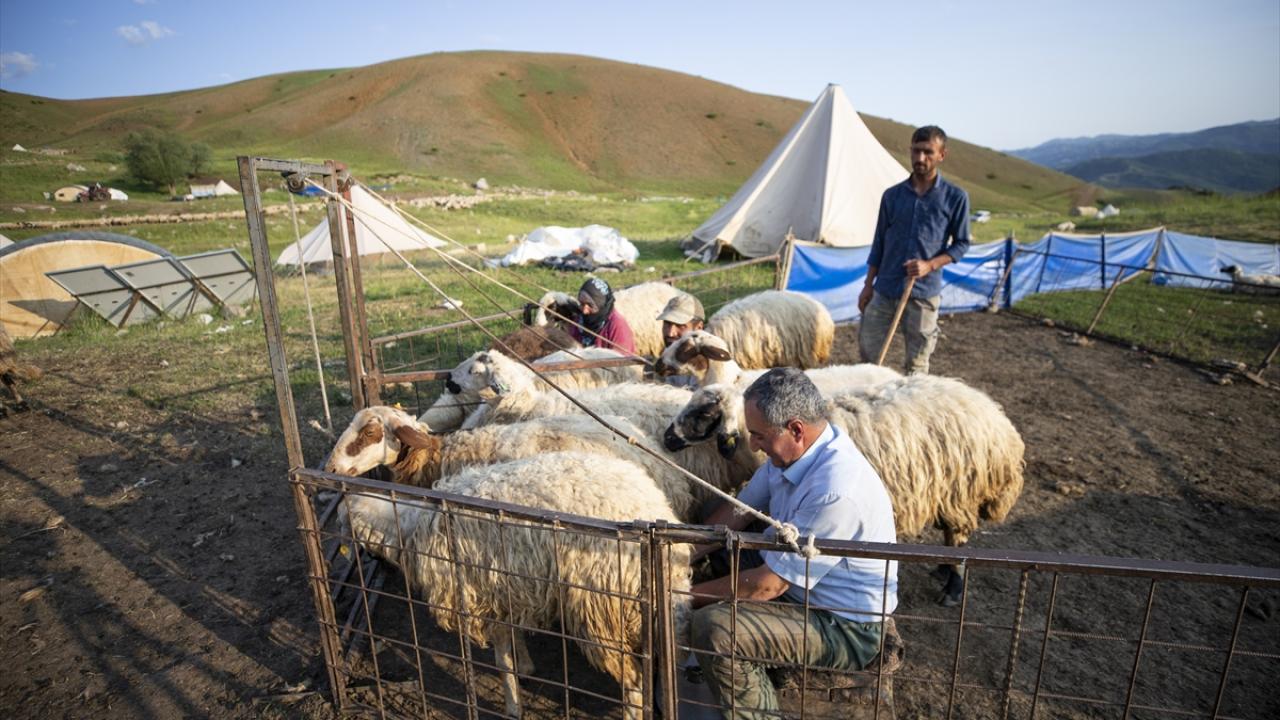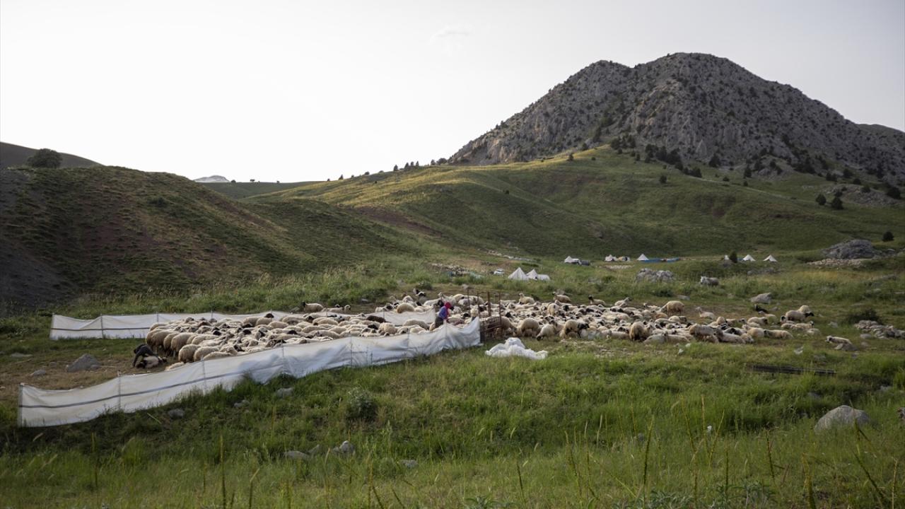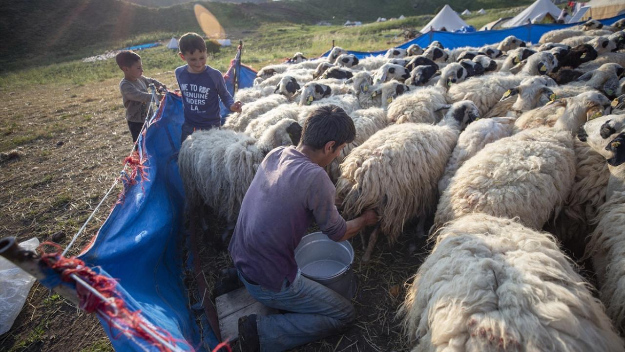 Koyunlarını gece gündüz dağlarda otlatarak besleyen göçerler, günde iki kez yayla yerlerine getirdikleri hayvanlarının kırkım ve süt sağım işlemini yapıyor.