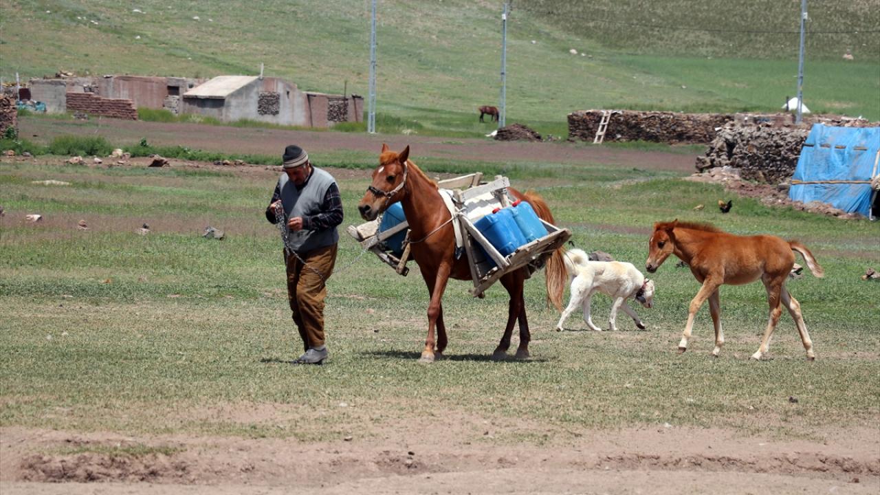 Diyadin ilçesinin yüksek rakımlı Hacıhalit köyünde hayvancılık yapanlar, baharın gelişiyle yeniden Tendürek Dağı`nın eteklerinde yer alan Çoban Yaylası`na çıktı.