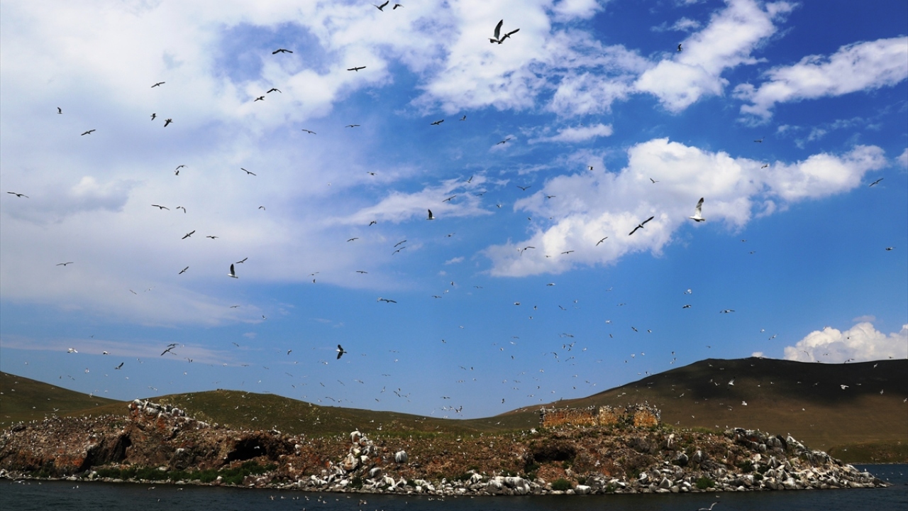 Gölün ortasında bulunan adalarda konaklayan kuşlar, burada hem beslenme hem de üreme imkanı buluyor.