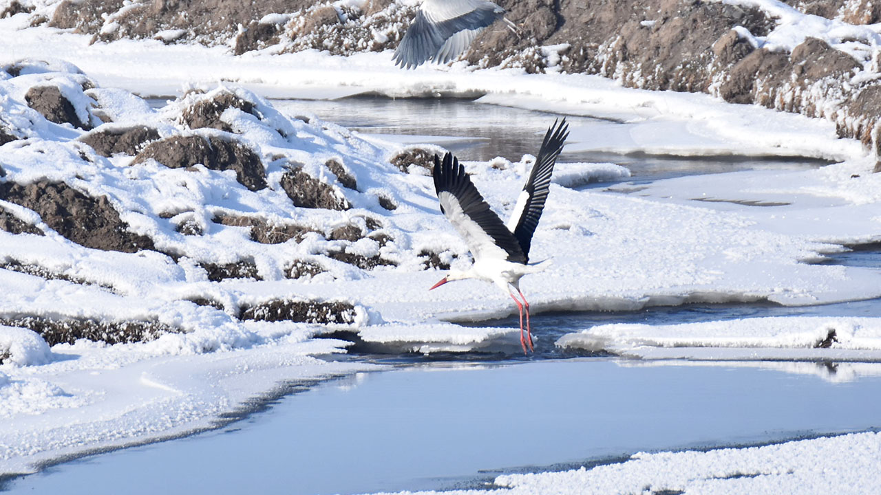 Kars'ta göçmen kuşlar, sulak alanlarda yiyecek arayışına girdi. Hava sıcaklığının gece sıfırın altında 19 dereceye düştüğü kentte, bu sene bazı kuşların göç etmemesi dikkat çekti.