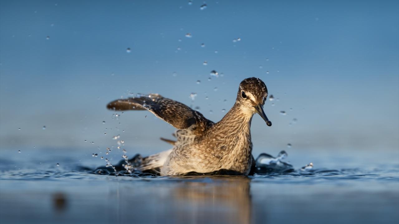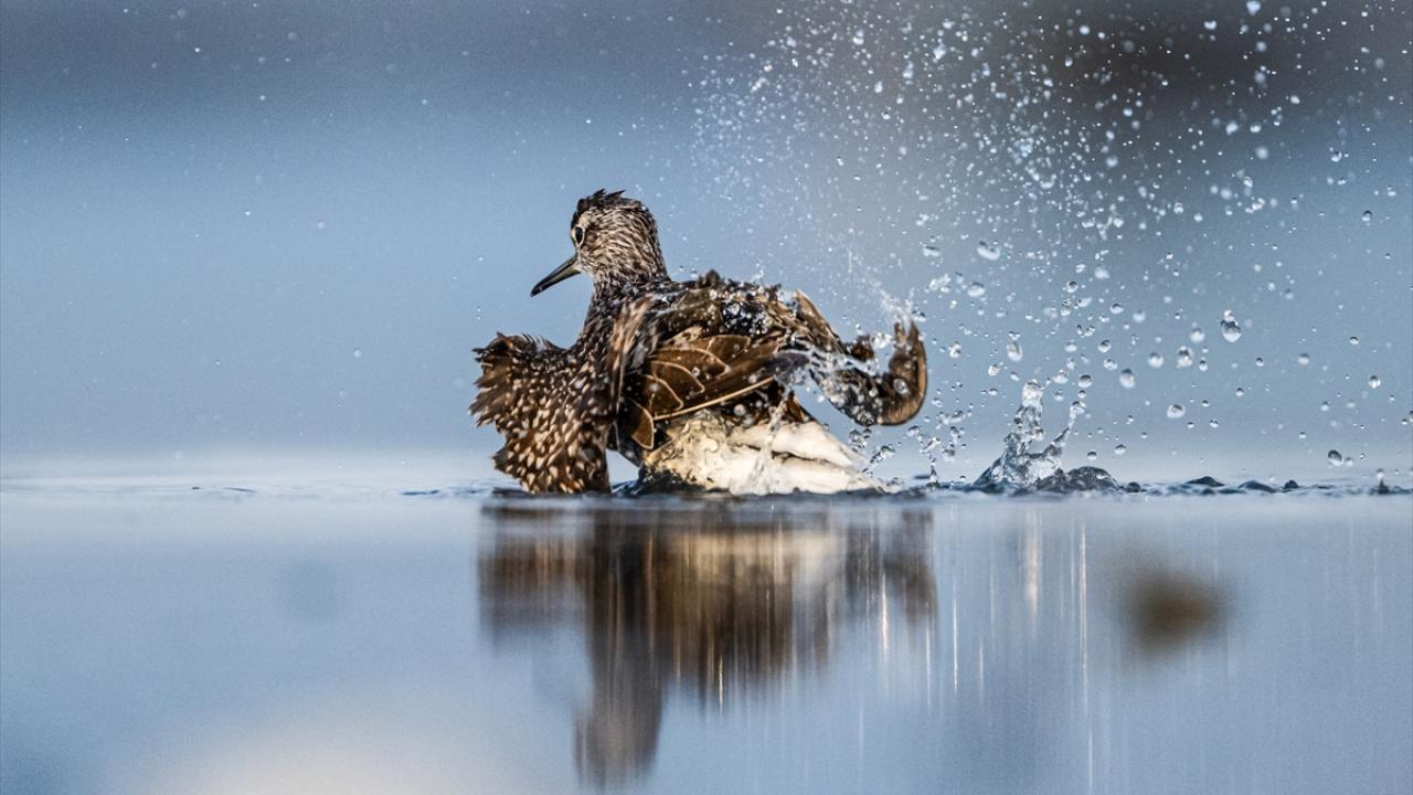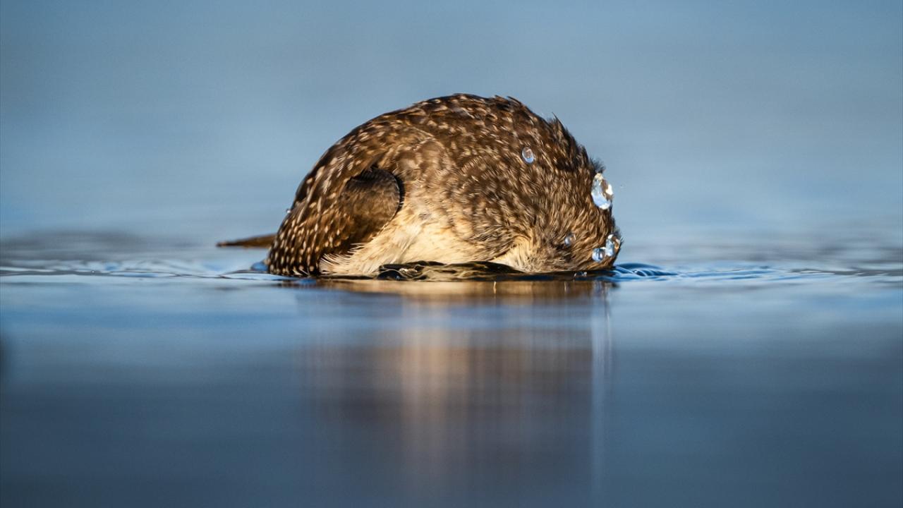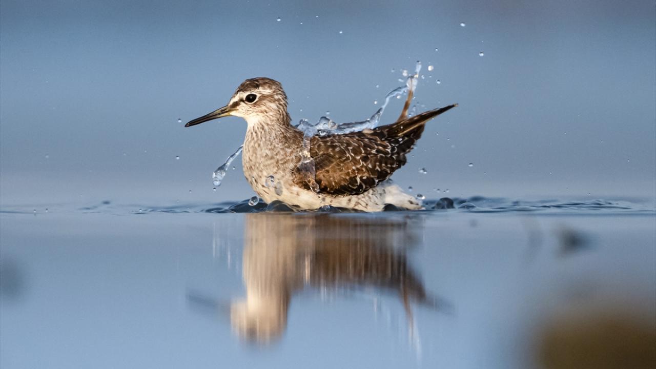 Sonbahar göçü sırasında Bursa’daki göl ve nehir kıyılarında mola veren göçmen kuşların, tüylerini temizlemek ve serinlemek için kıyı şeridinde toplanarak yaptıkları su banyoları dikkati çekti.