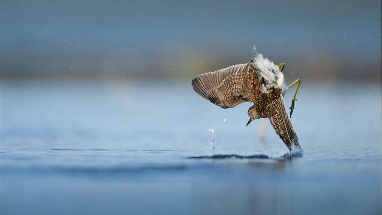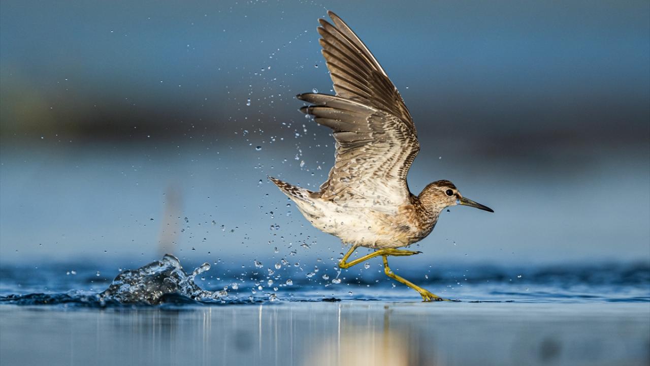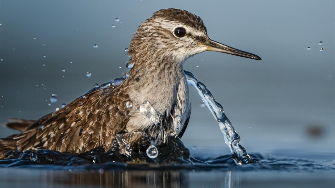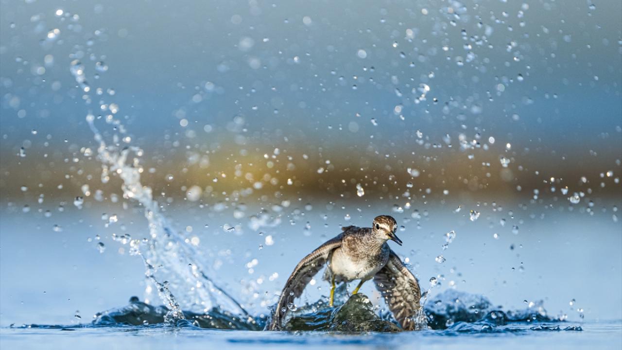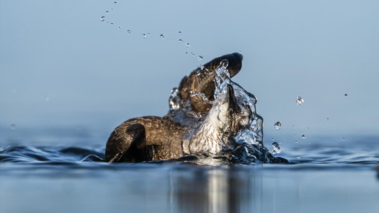 Sonbahar göçü sırasında Bursa’daki göl ve nehir kıyılarında mola veren göçmen kuşların, tüylerini temizlemek ve serinlemek için kıyı şeridinde toplanarak yaptıkları su banyoları dikkati çekti.