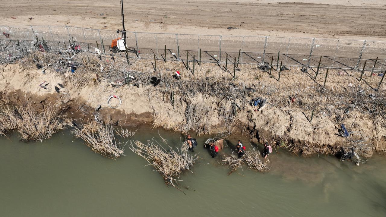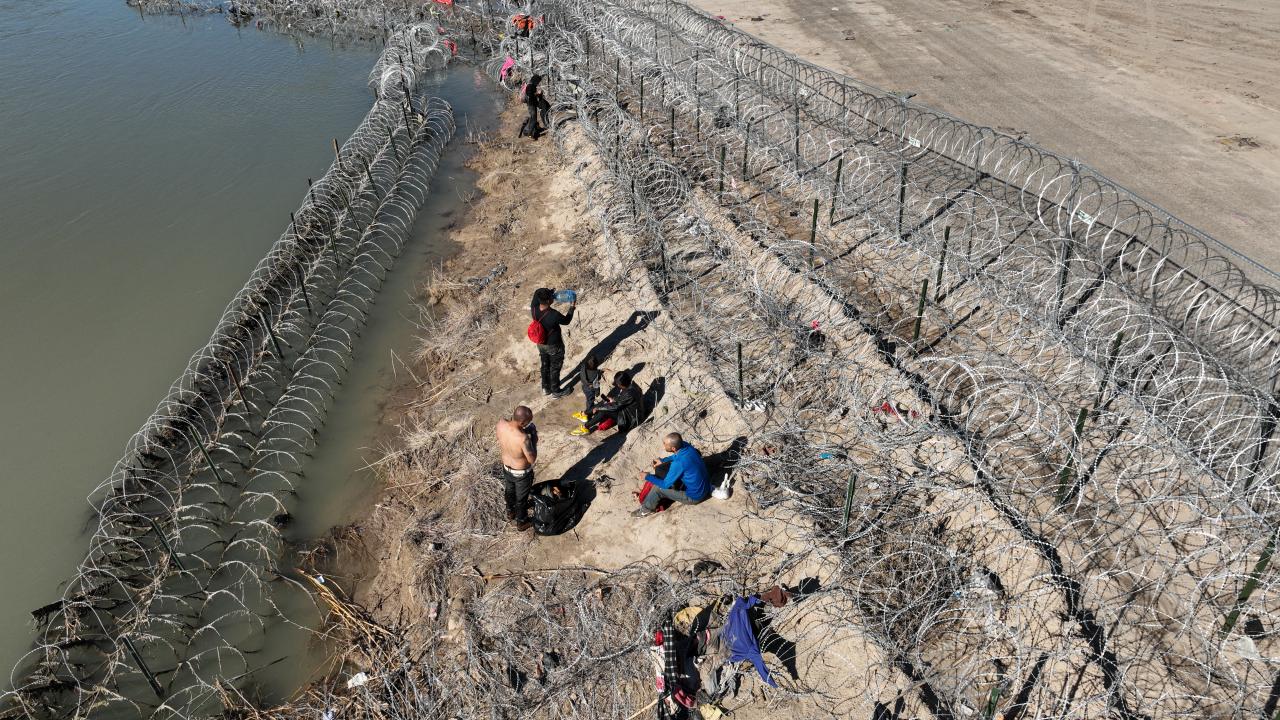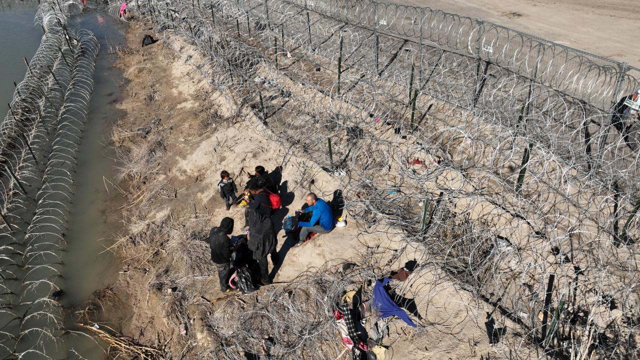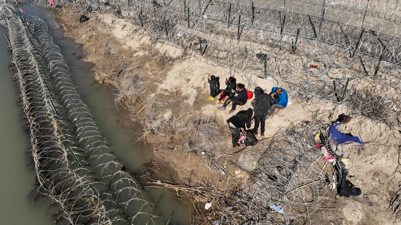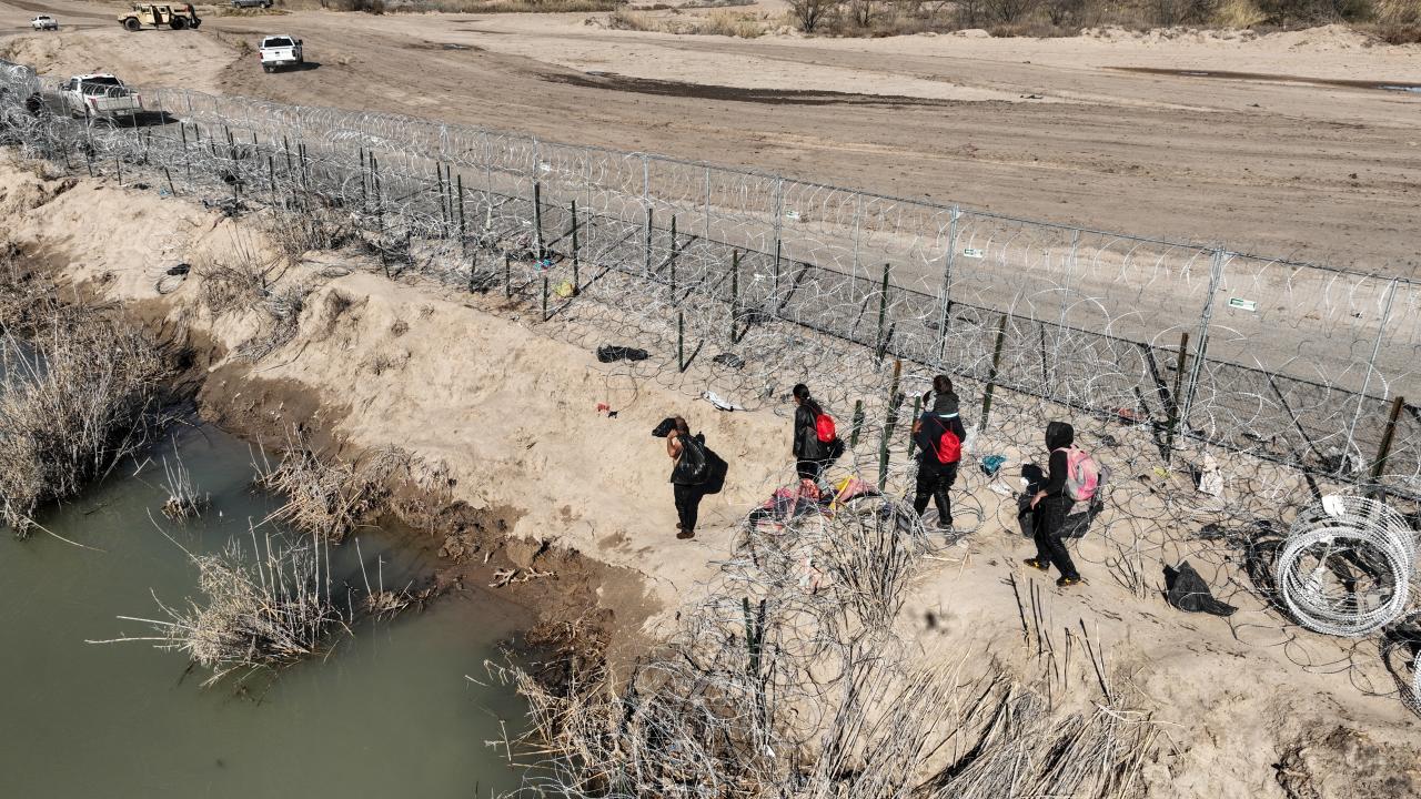 Düzensiz göçmenler, iki ülke arasında sınırı oluşturan Rio Grande Nehri üzerinden gelerek Teksas`ın Eagle Pass kenti yakınındaki sınıra sıfır noktasında çekilen dikenli tellere rağmen sınırı geçmeye çalışıyor.