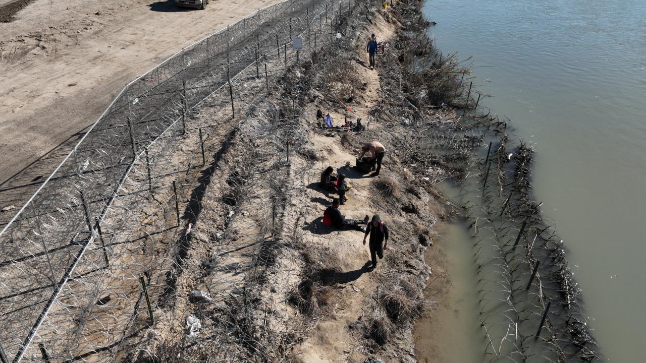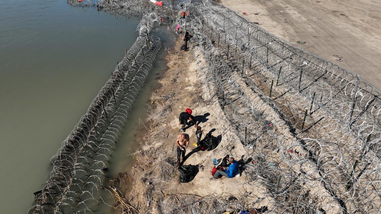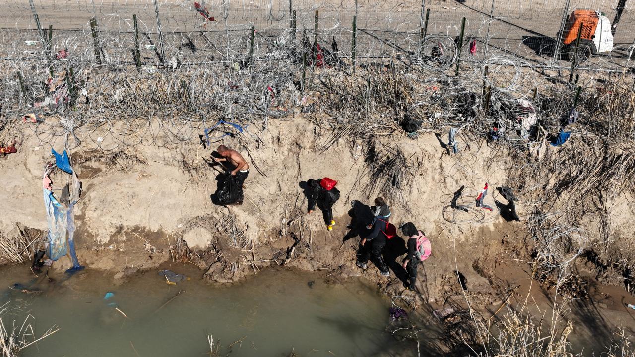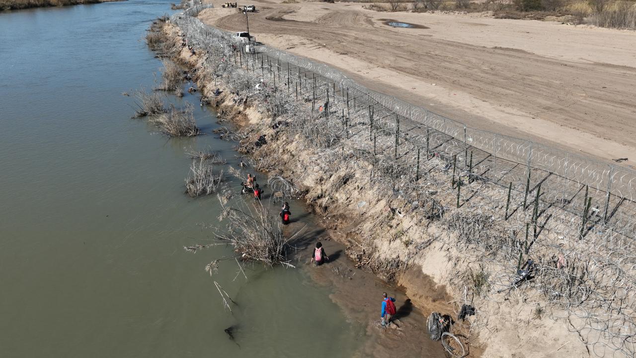 Düzensiz göçmenler, iki ülke arasında sınırı oluşturan Rio Grande Nehri üzerinden gelerek Teksas`ın Eagle Pass kenti yakınındaki sınıra sıfır noktasında çekilen dikenli tellere rağmen sınırı geçmeye çalışıyor.