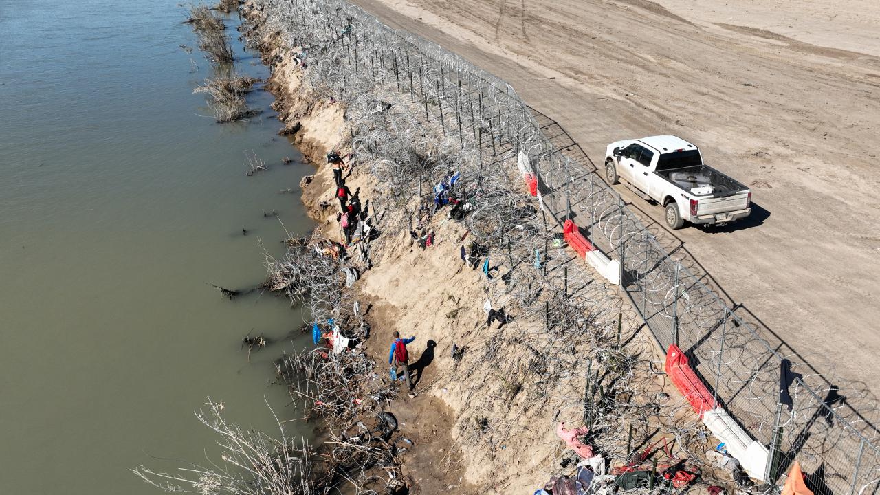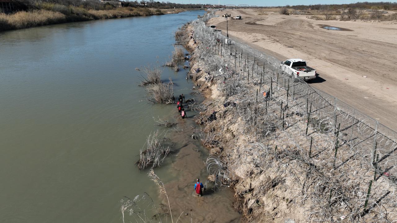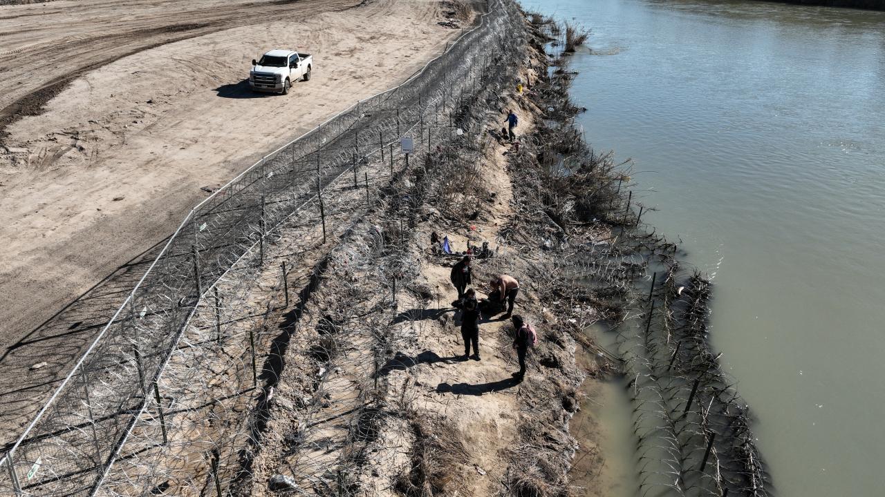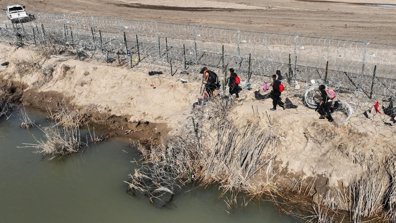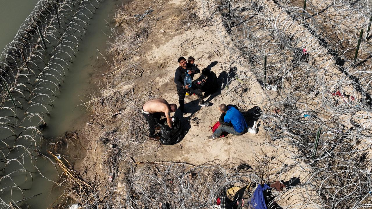 Düzensiz göçmenler, iki ülke arasında sınırı oluşturan Rio Grande Nehri üzerinden gelerek Teksas`ın Eagle Pass kenti yakınındaki sınıra sıfır noktasında çekilen dikenli tellere rağmen sınırı geçmeye çalışıyor.