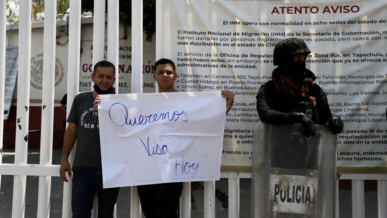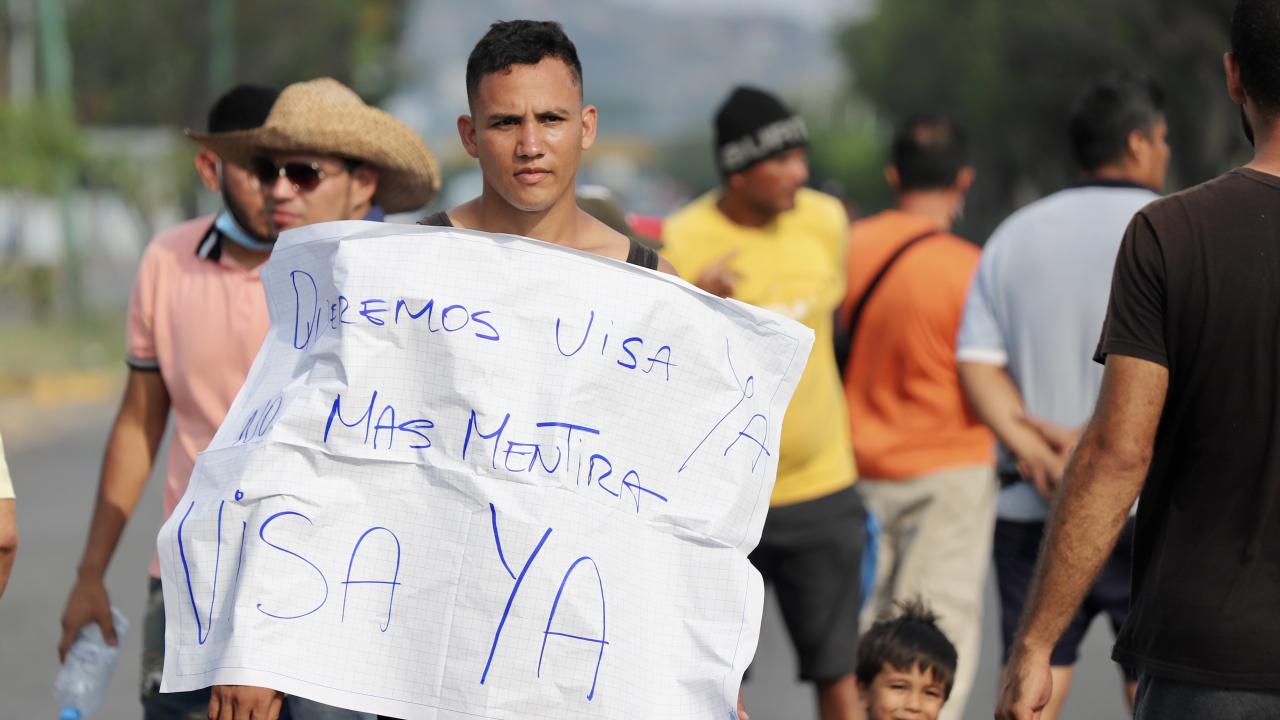 Meksika'nın Chiapas eyaletine bağlı Tuxtla Gutierrez kentinde çoğunluğu Venezüella kökenli yaklaşık iki yüz göçmen, Chiapas'a giden ana yollardan birini kapatarak Ulusal Göç Enstitüsü ofisinin önünde gösteri düzenledi.