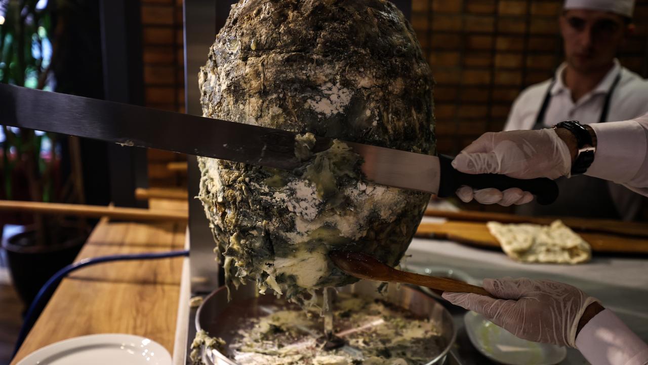 İlter Avşar`ın "Eritme döner" diye tanıttığı göğermiş peynirden yapılan döner, sosyal medyada da ilgi gördü.