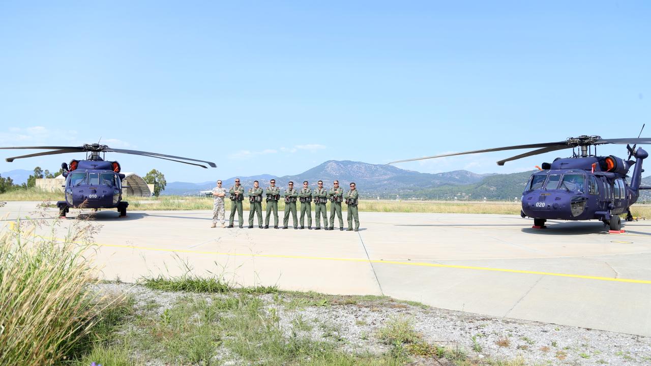 Orman yangınlarıyla mücadele planı kapsamında üste görevlendirilen Konya 3`üncü Ana Jet Üs Komutanlığına bağlı 135`inci Personel Kurtarma Filo Komutanlığı T-70 helikopter ekibi de bayramı nöbette karşıladı.