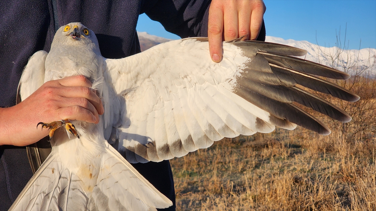 Alana gelen önemli yırtıcı türlerinden olan gökçe deliceye (Circus cyaneus), 27 Şubat`ta uydu vericisi takıldı.