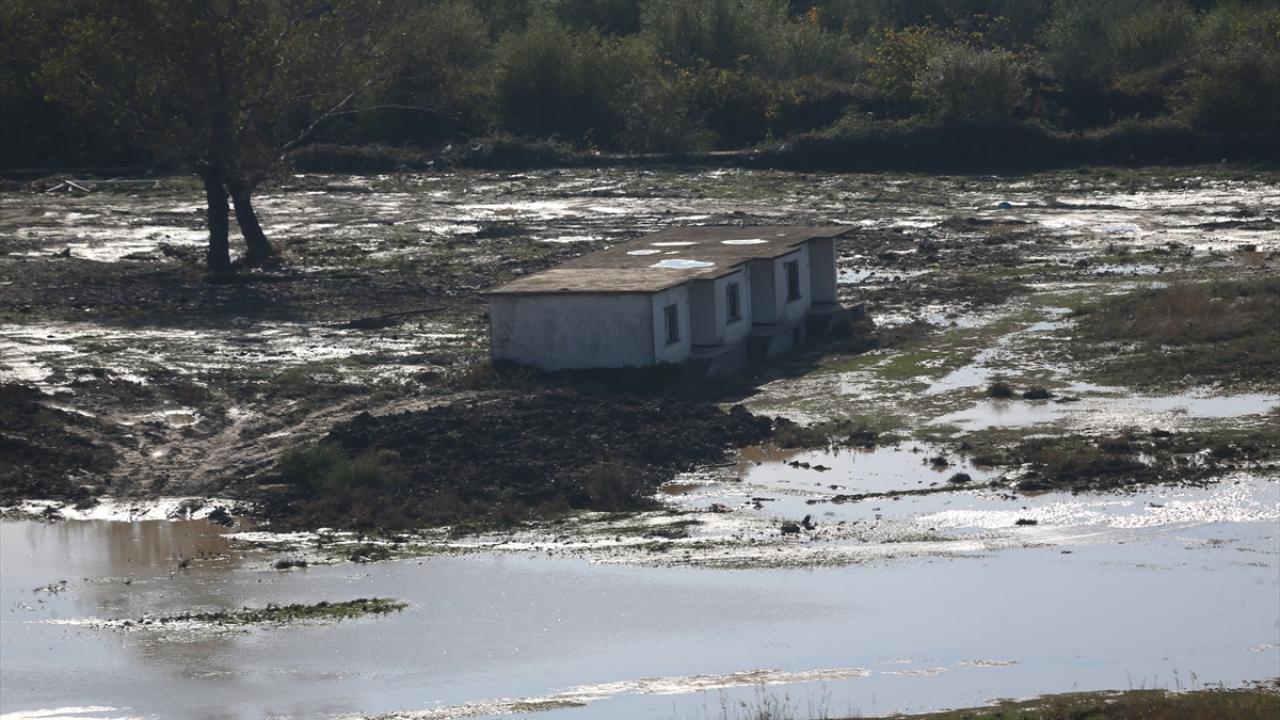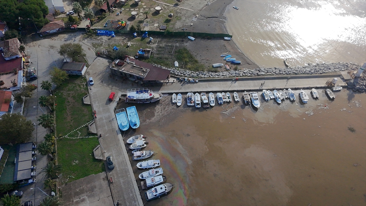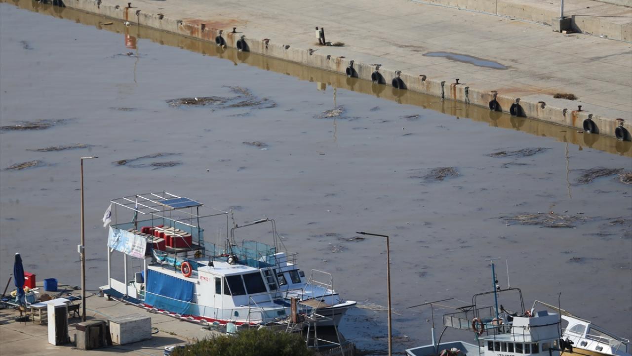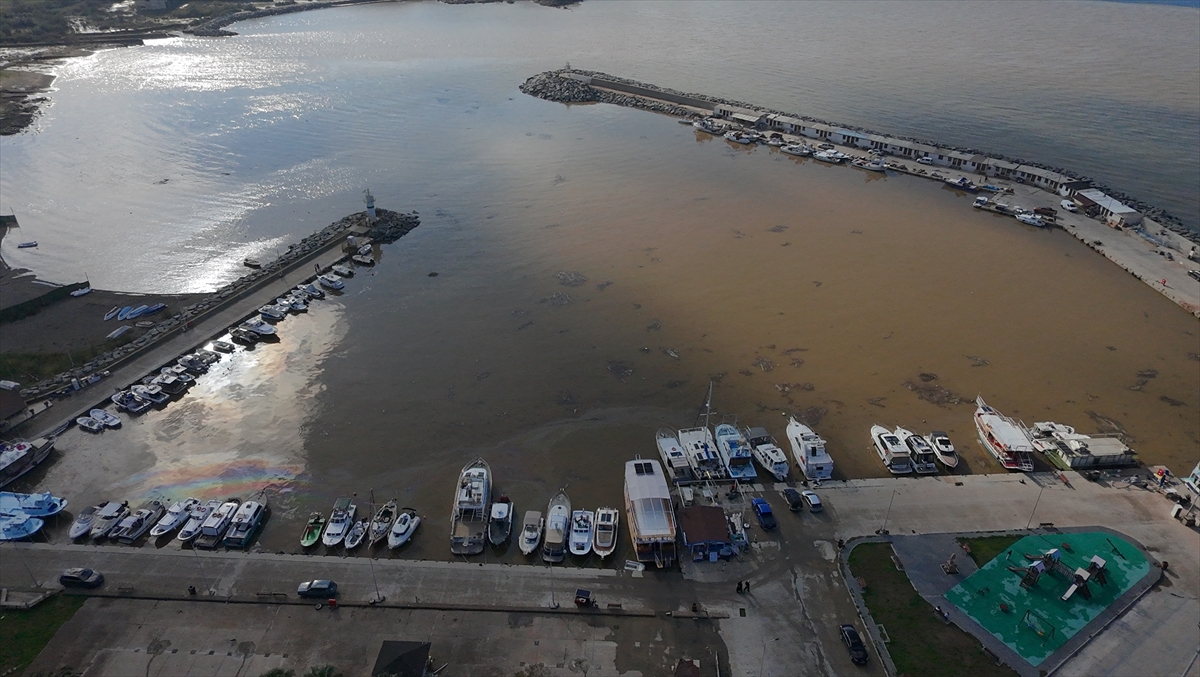 Çanakkale'nin Gökçeada ilçesinde gece yarısı başlayan kuvvetli sağanak nedeniyle oluşan yağmur suları ve çamur denizin rengini değiştirdi.