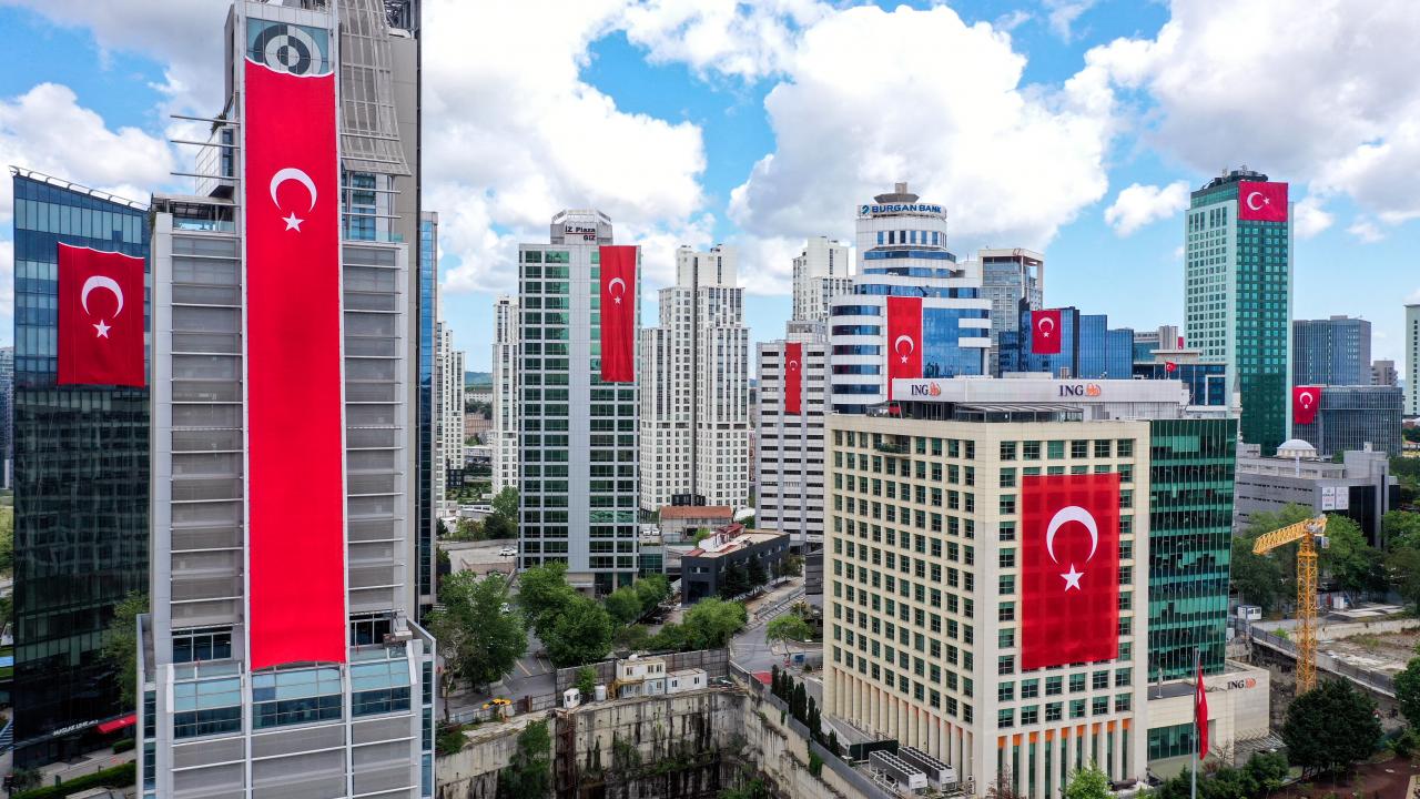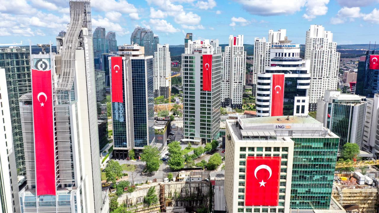 İstanbul Maslak'taki gökdelenler, 19 Mayıs Atatürk'ü Anma, Gençlik ve Spor Bayramı dolayısıyla Türk bayraklarıyla donatıldı.