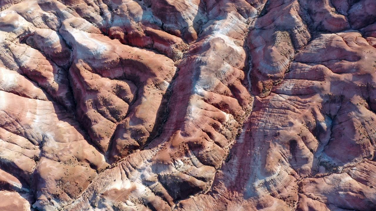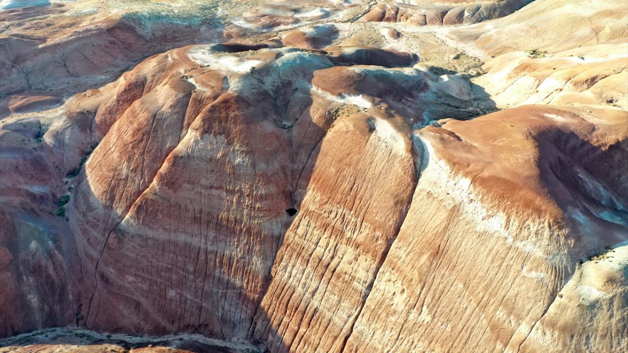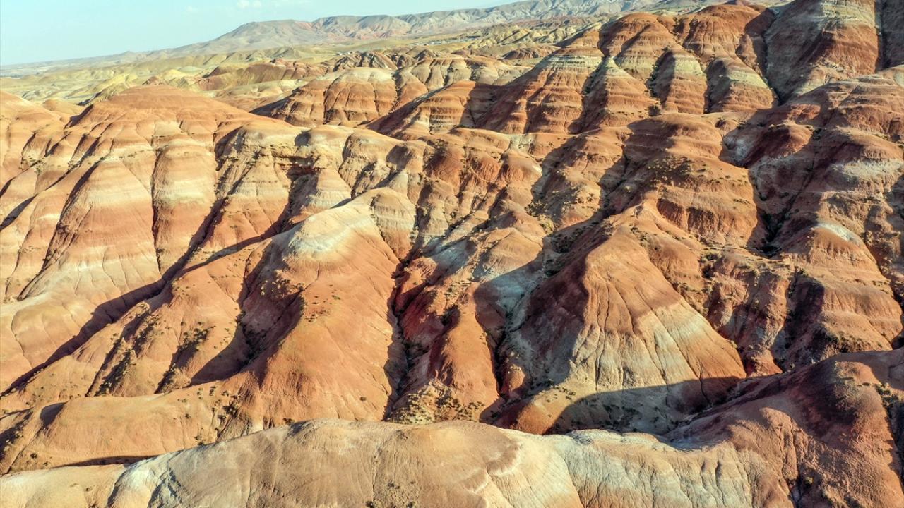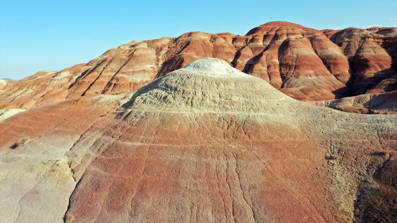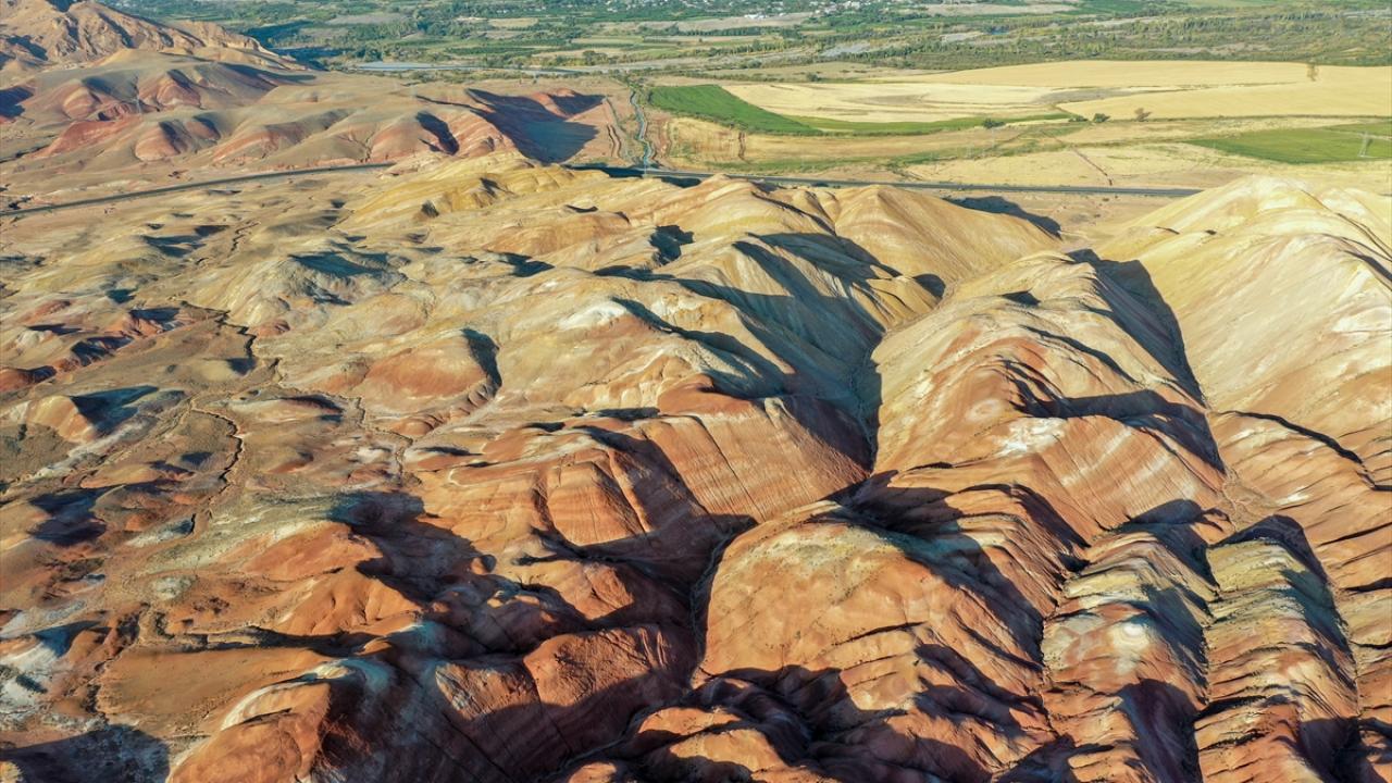 Iğdır'ın Tuzluca ilçesinde bulunan Gökkuşağı Tepeleri, farklı toprak yapılarını ve katmanlarını bir arada barındırması nedeniyle rengarenk görüntü sunuyor.