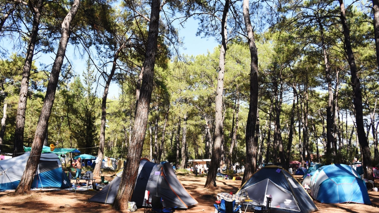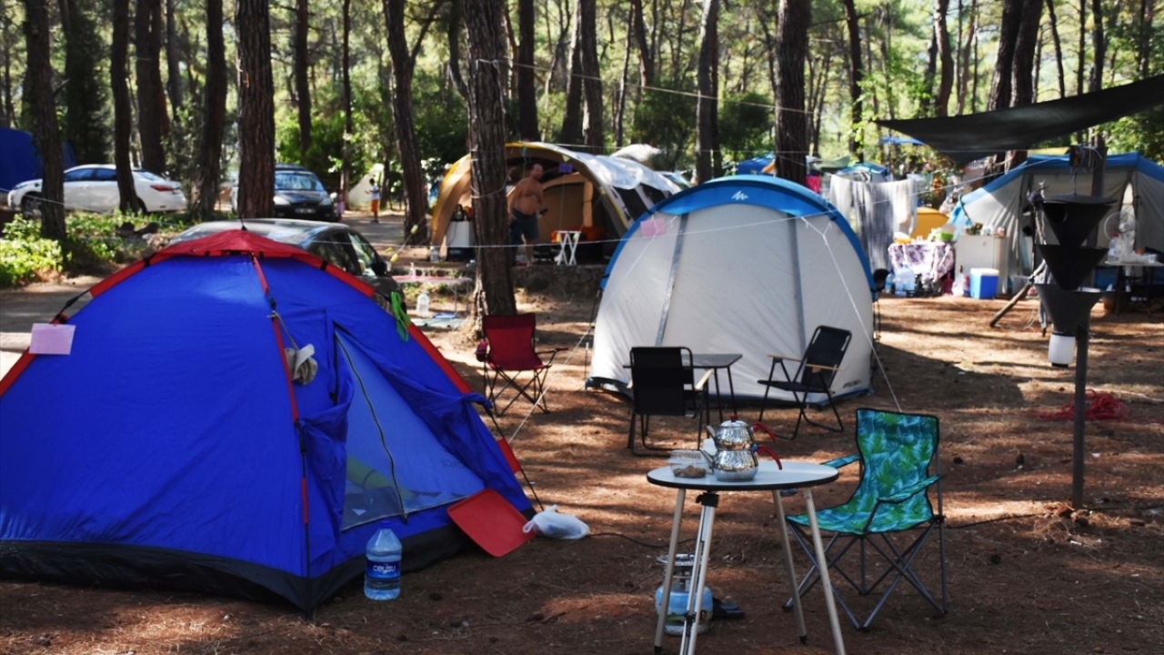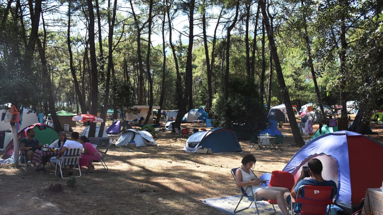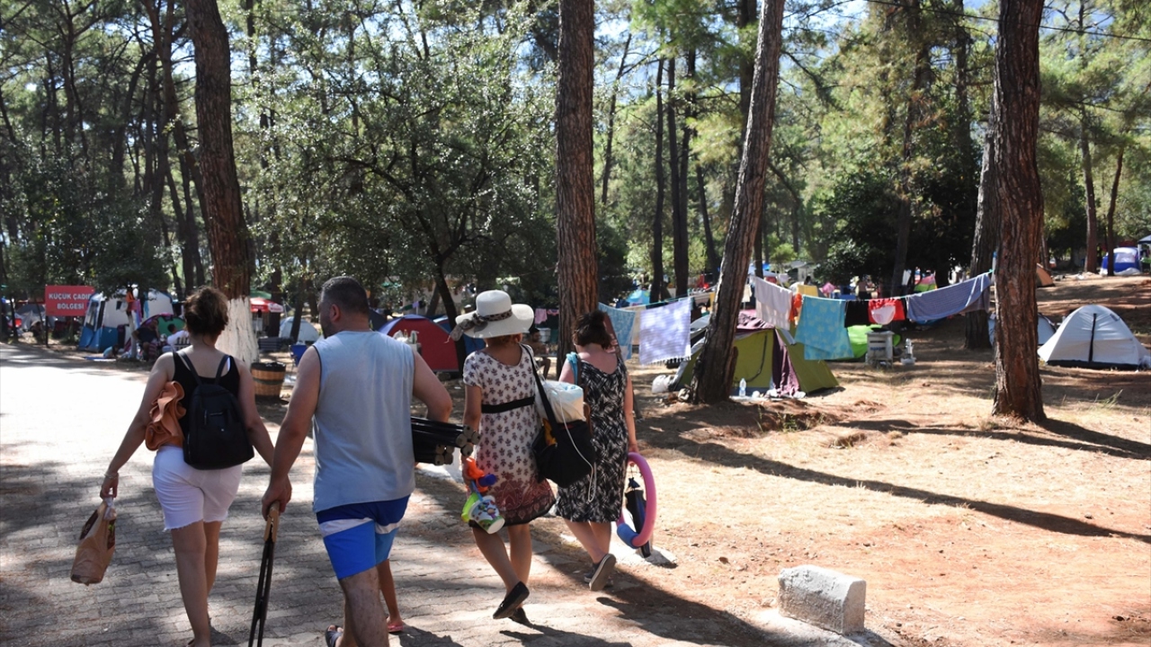 Türkiye`nin dört bir yanından gelen tatilciler, dev çam ağaçlarının gölgesine kurdukları çadırlarda, aileleriyle körfezin kıyısında kamp yapıyor.
