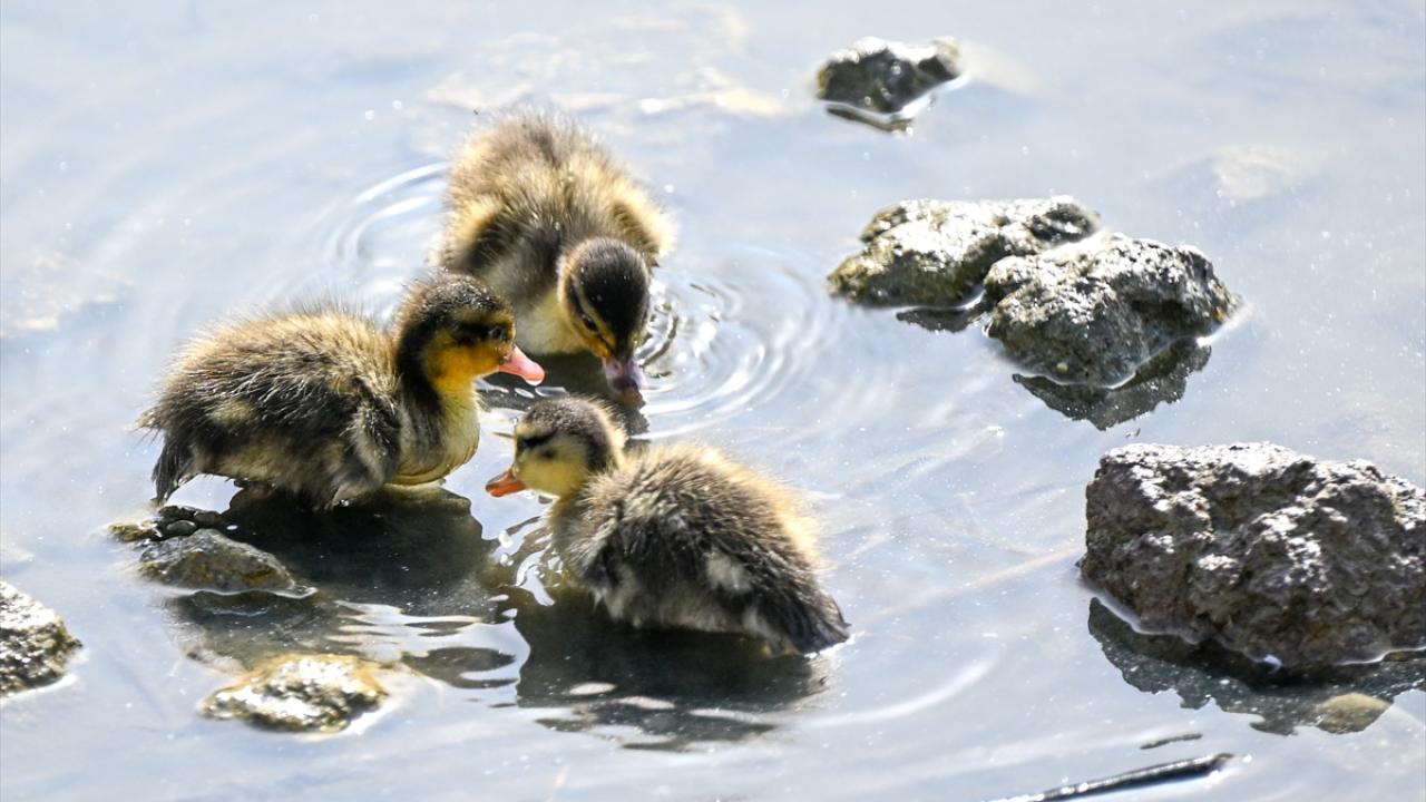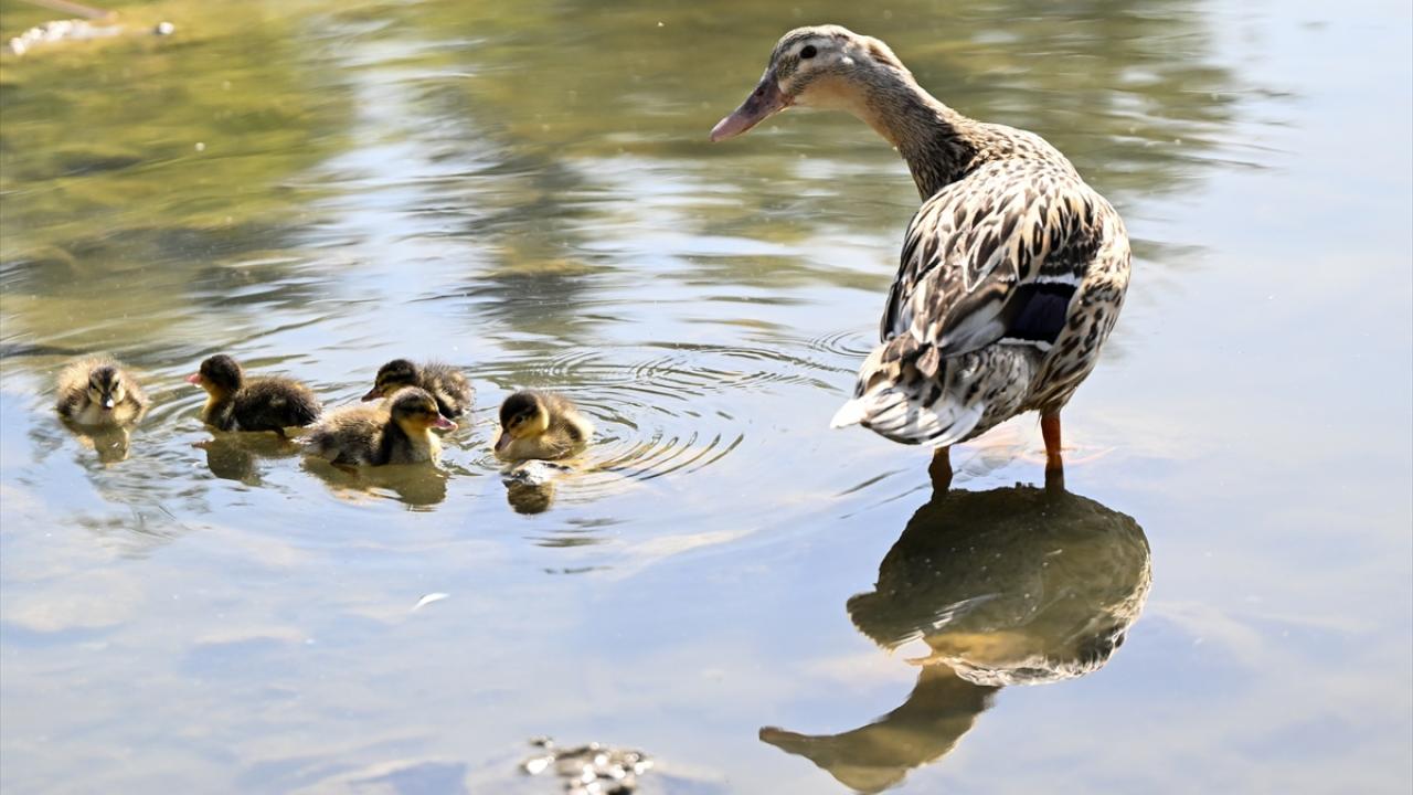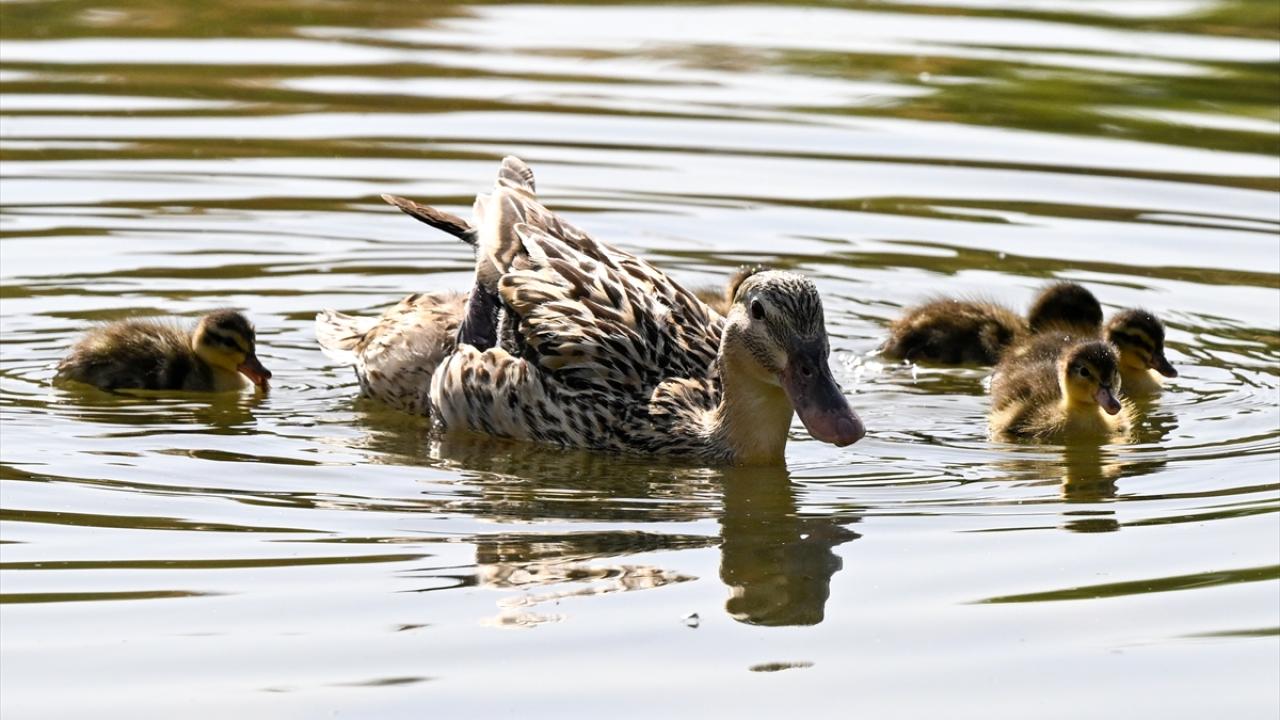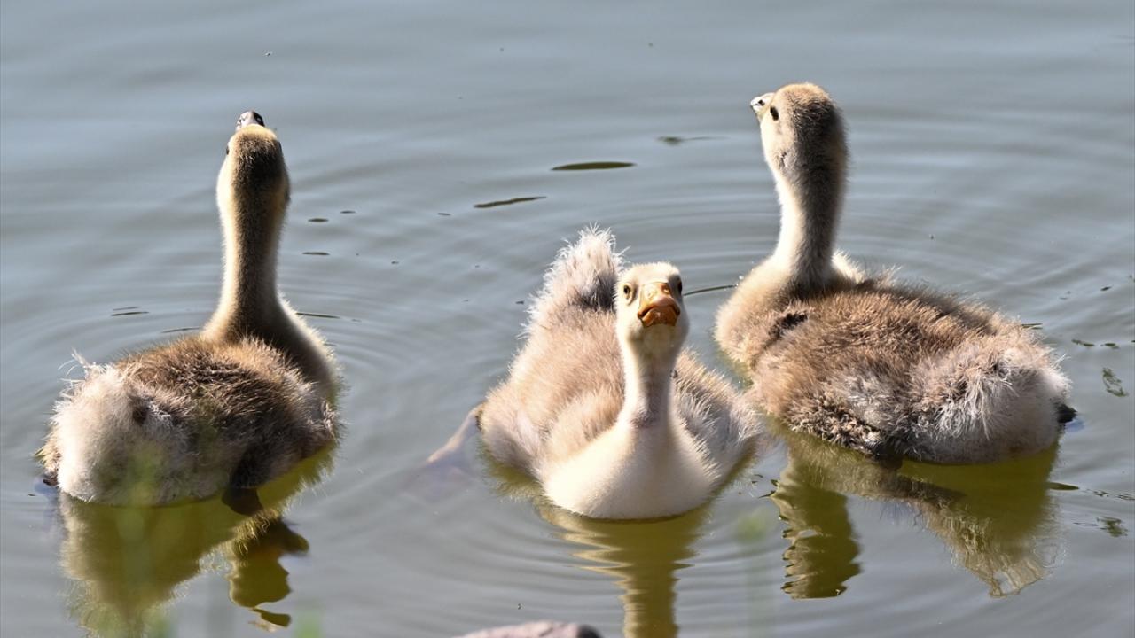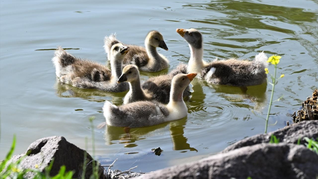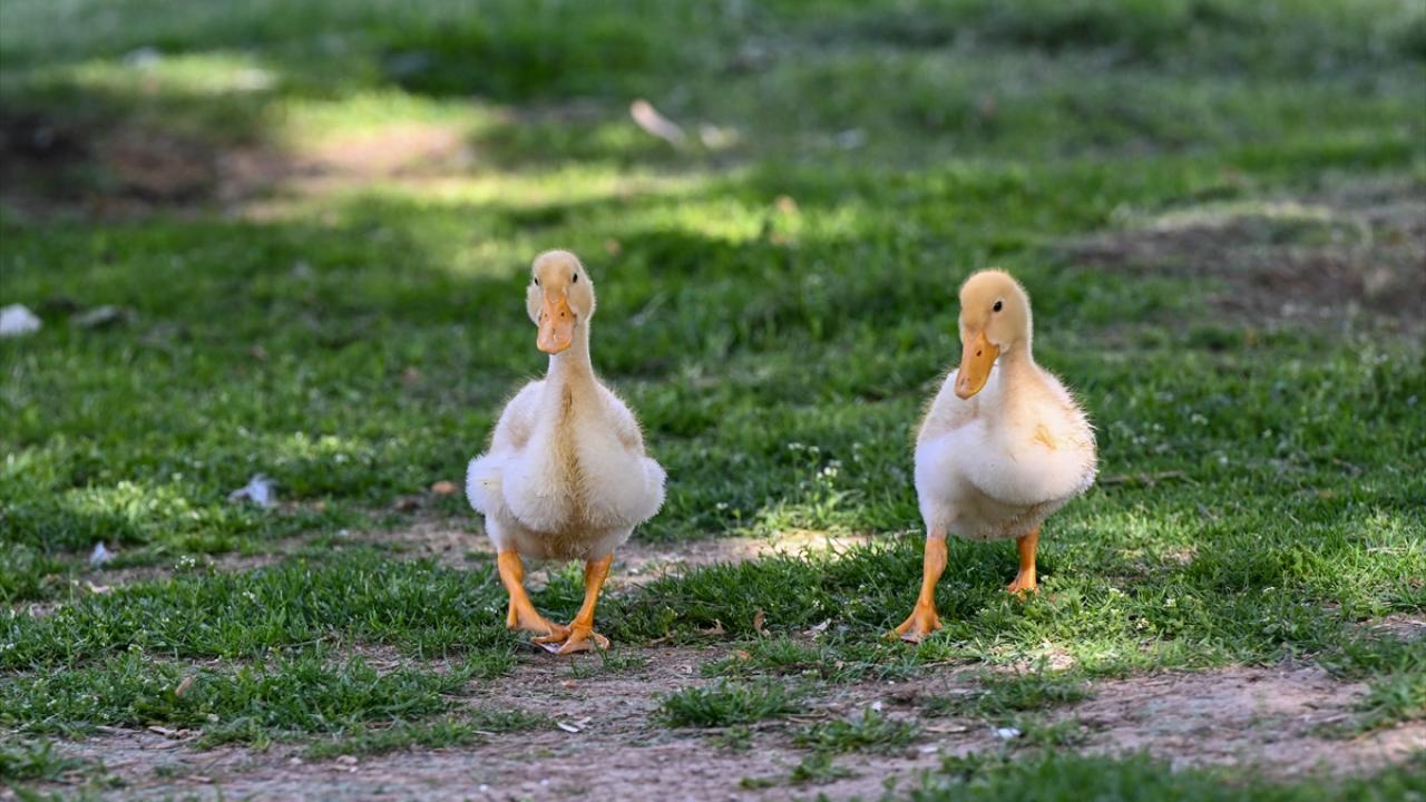 Ankara’nın Etimesgut ilçesindeki Göksu Park'ta bulunan gölette yaşayan ördek ve kaz yavruları ziyaretçilerden ilgi görüyor.