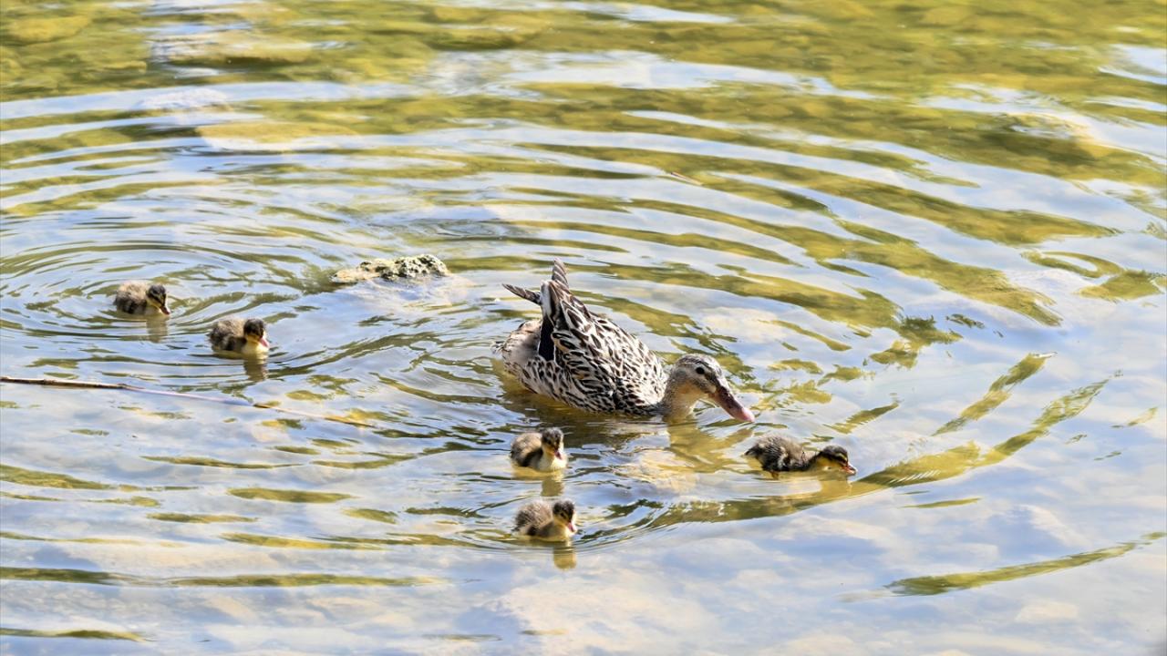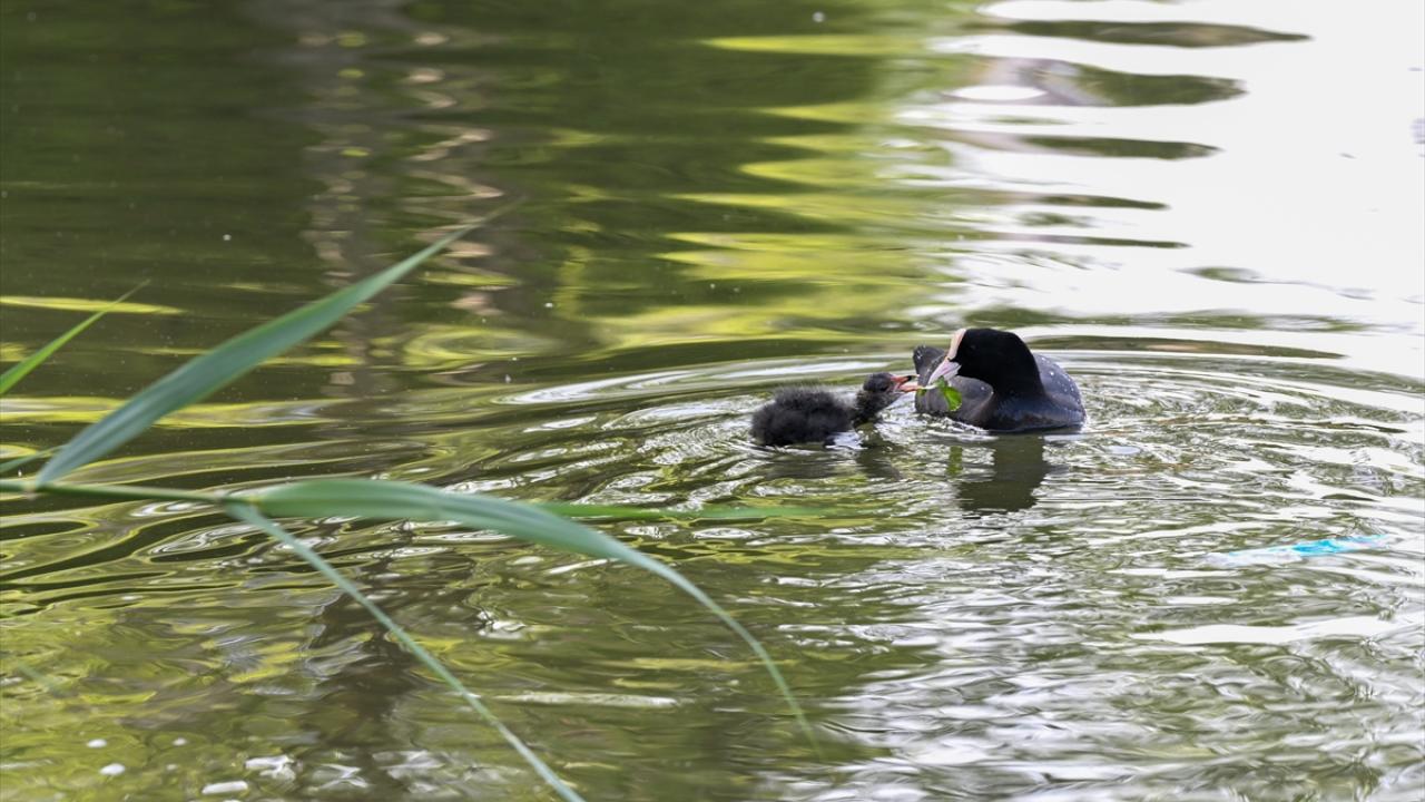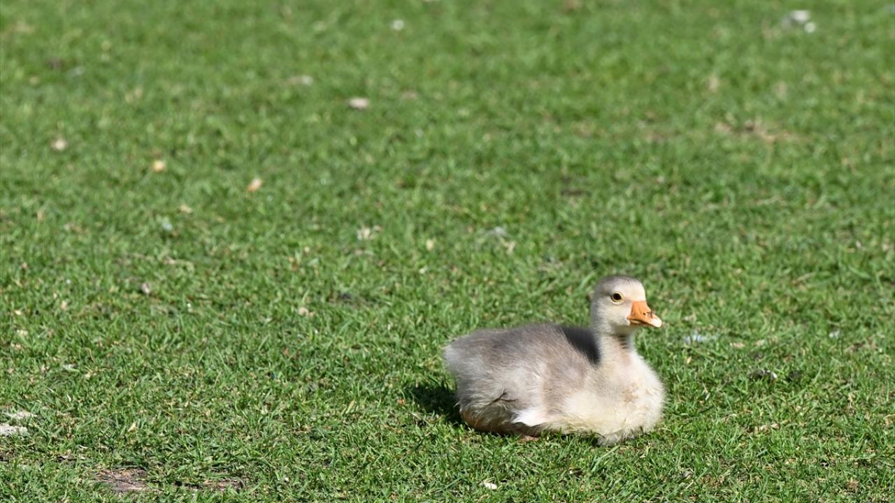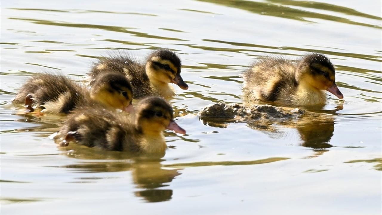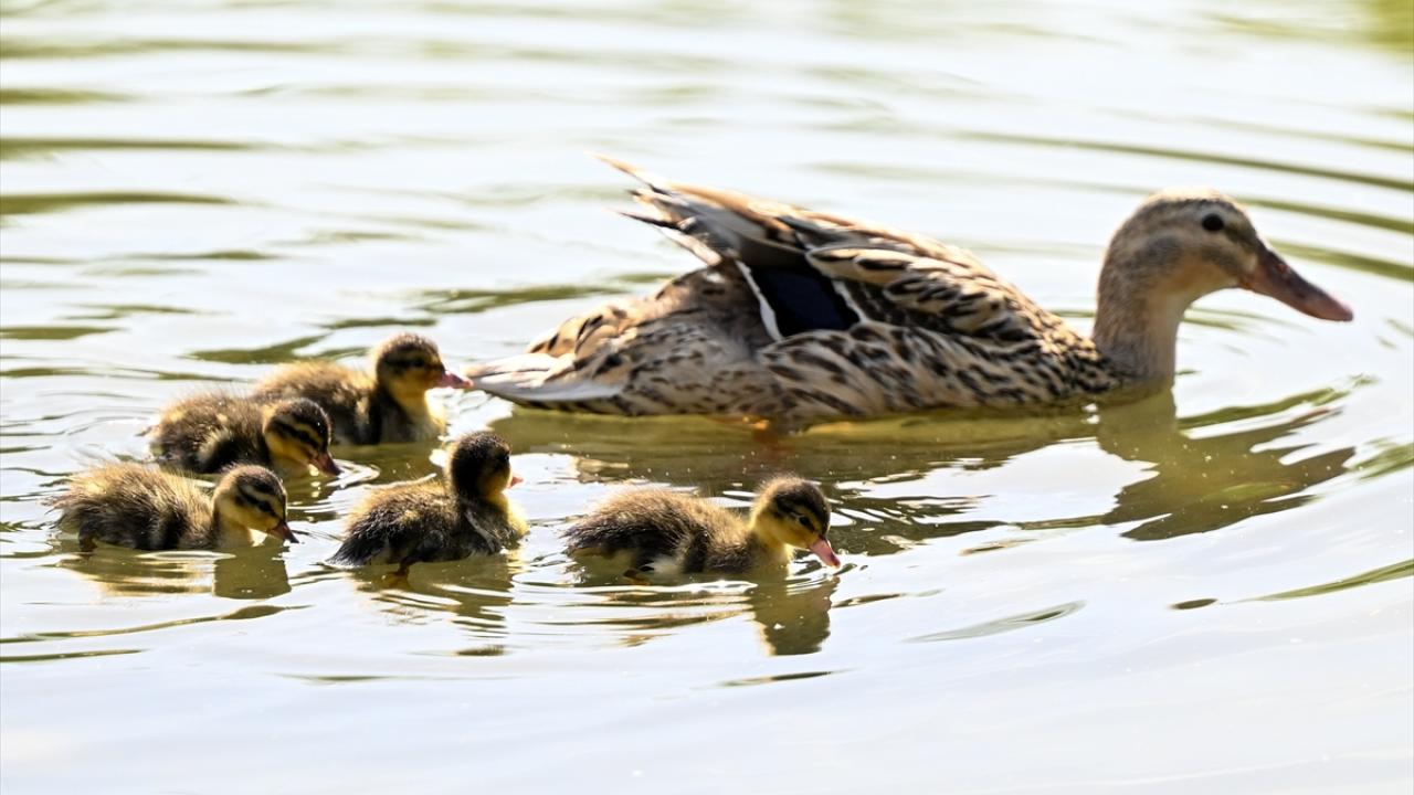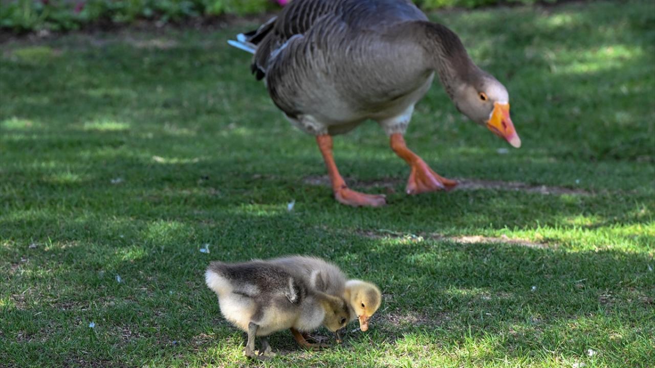 Ankara’nın Etimesgut ilçesindeki Göksu Park'ta bulunan gölette yaşayan ördek ve kaz yavruları ziyaretçilerden ilgi görüyor.