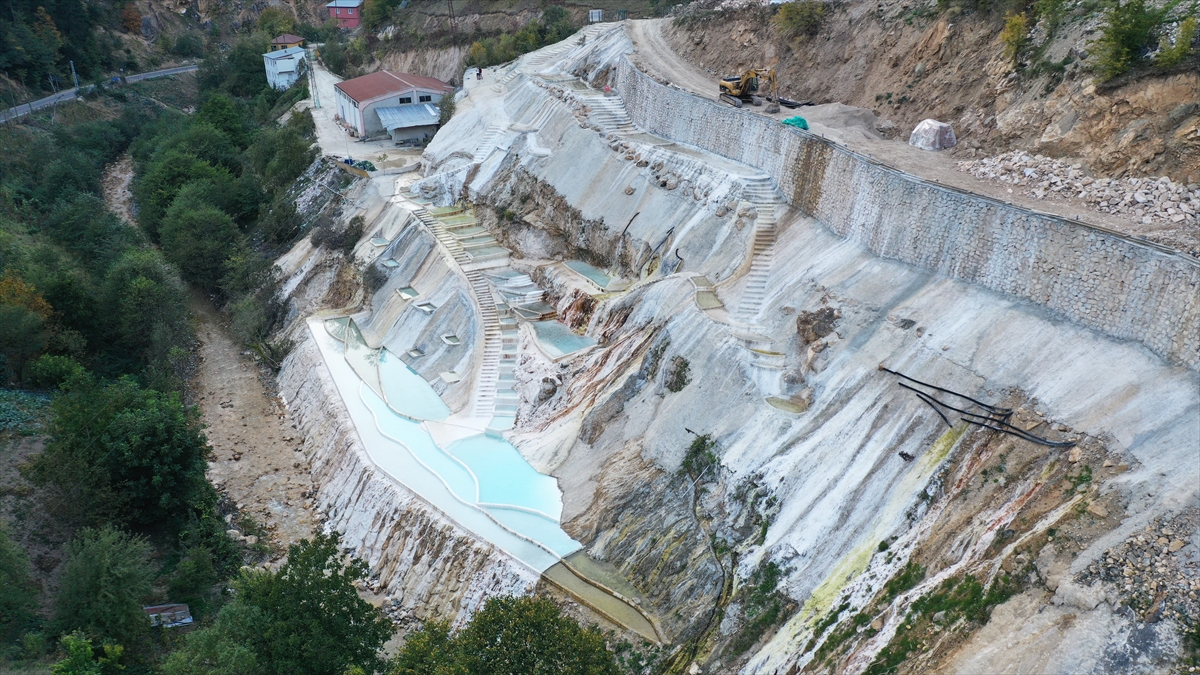 Kılavuz, projede bölgedeki mineralli suları bir araya getirerek, doğal karstik yapıyı bozmadan göletler oluşturulduğunu ifade ederek, "Pamukkale travertenlerine benzer bir görüntü elde edilecek. Burada oluşturduğumuz göletler ve havuzlar var. Bunlar şu anda turkuaz rengini almaya başladı, suyun aktığı yerler de beyazlamaya başladı." dedi.