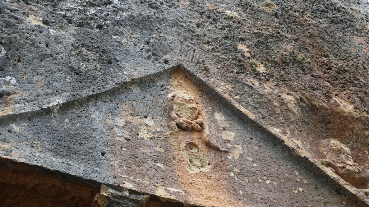 Karaman'ın Sarıveliler ilçesine bağlı Göktepe beldesindeki tarihi Köristan Örenyeri'nde üzerlerinde Medusa figürleri bulunan kaya mezarları, ziyaretçilerini bekliyor.