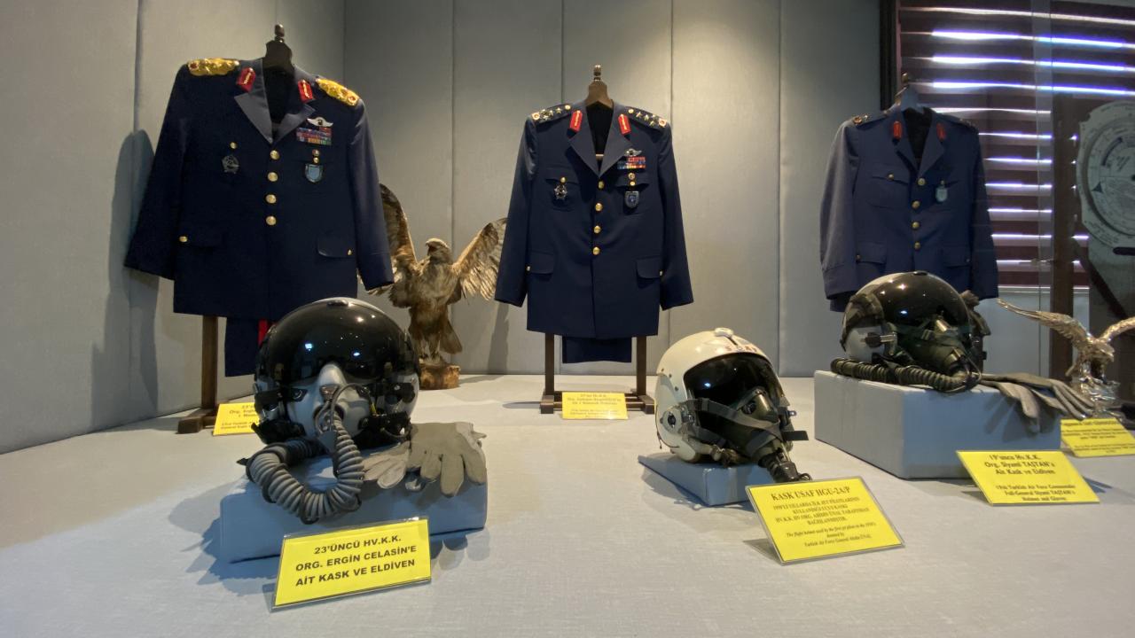 Vitrininde bugünün pilot kıyafetleri sergilenirken pilotların sırt çantasında bulunan serbest atlama sırt paraşütleri ve kaza kırım halinde acil durumlarda kullanabilecekleri hayat idame kiti de yer alıyor. Olta takımı, pusula, güneş kremi, işaret fişeği, dingi botu gibi ekipmanlar vitrin içinde sergileniyor. Vitrinde yer alan F-16 uçağına ait kara kutu da ziyaretçilerin ilgisini çeken ögeler arasında bulunuyor.