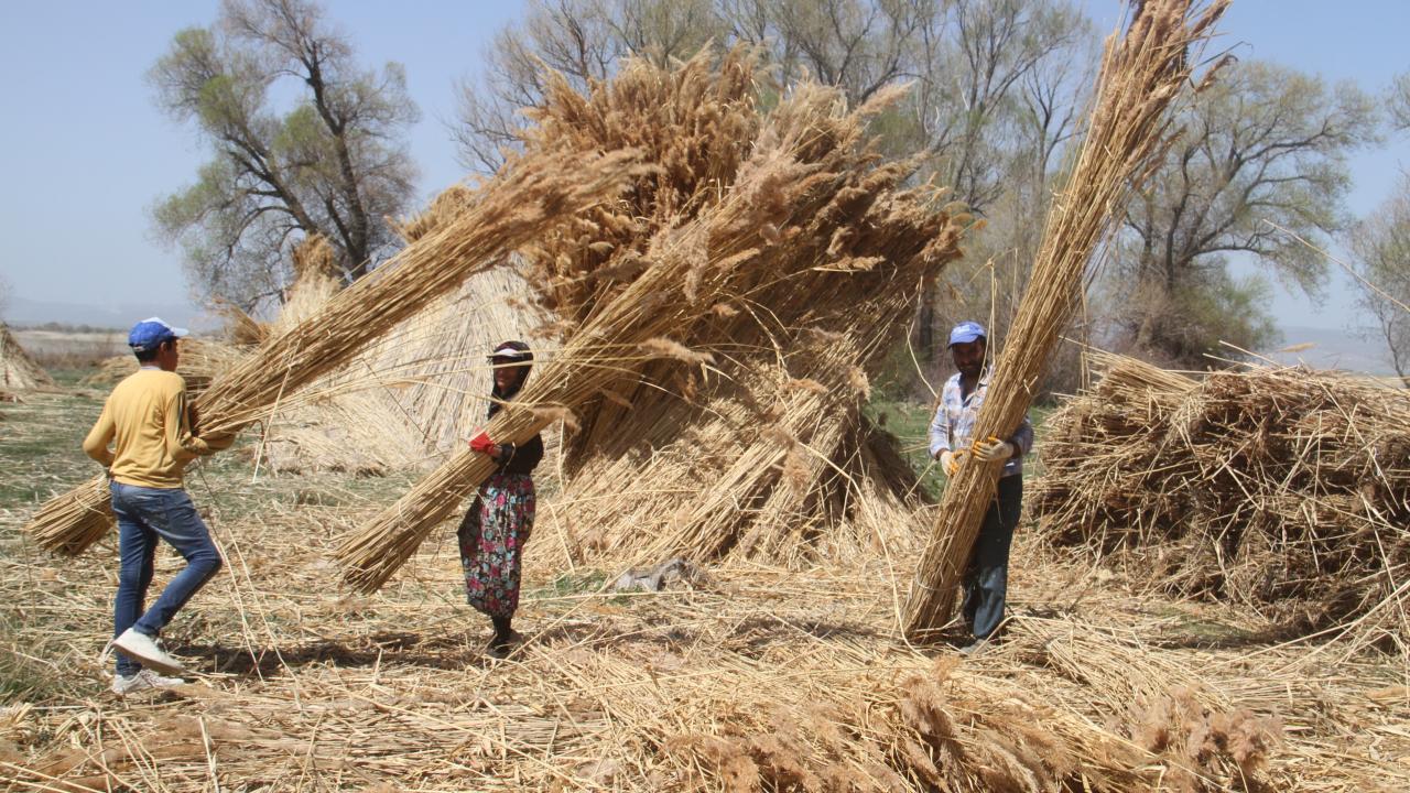 Göl kıyılarından kesilen kamışlar işlenerek Avrupa ülkelerine gönderiliyor