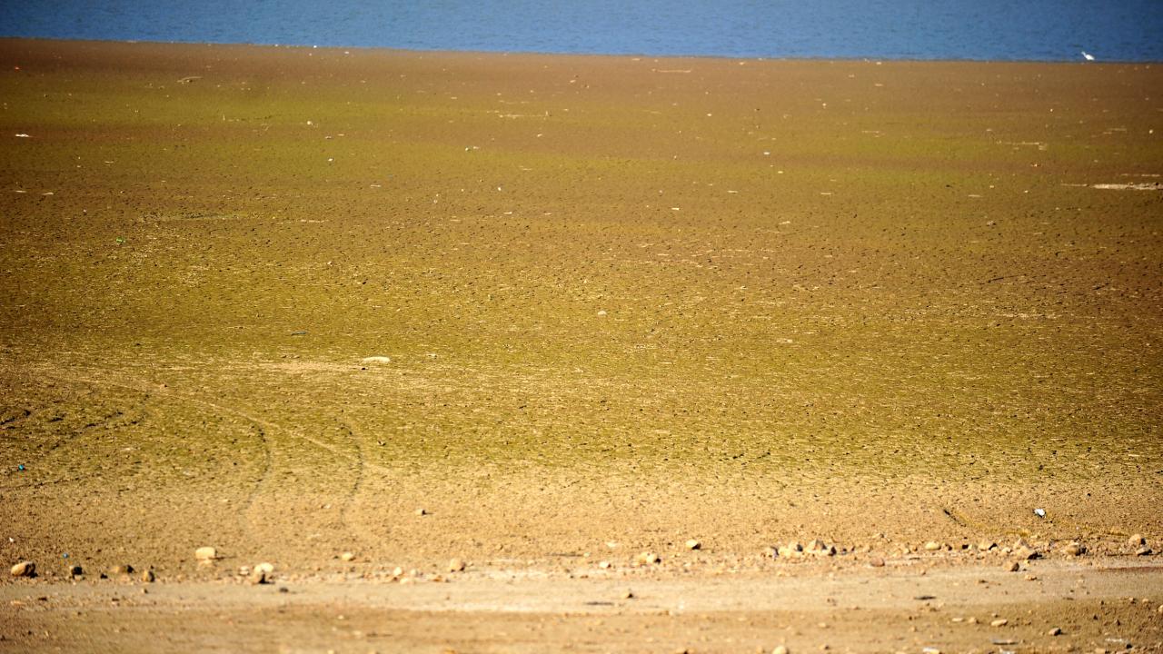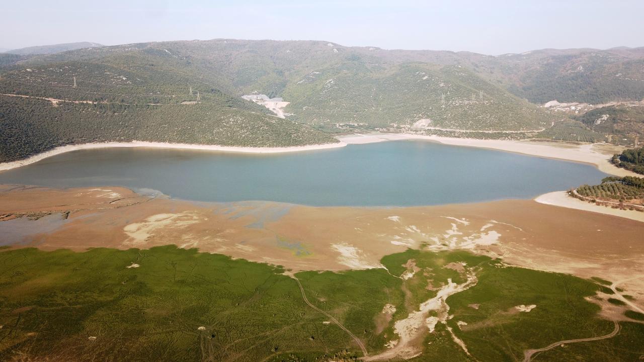 Yer yer yaklaşık 150 metre kadar çekilen göl, dronla havadan görüntülendi.
