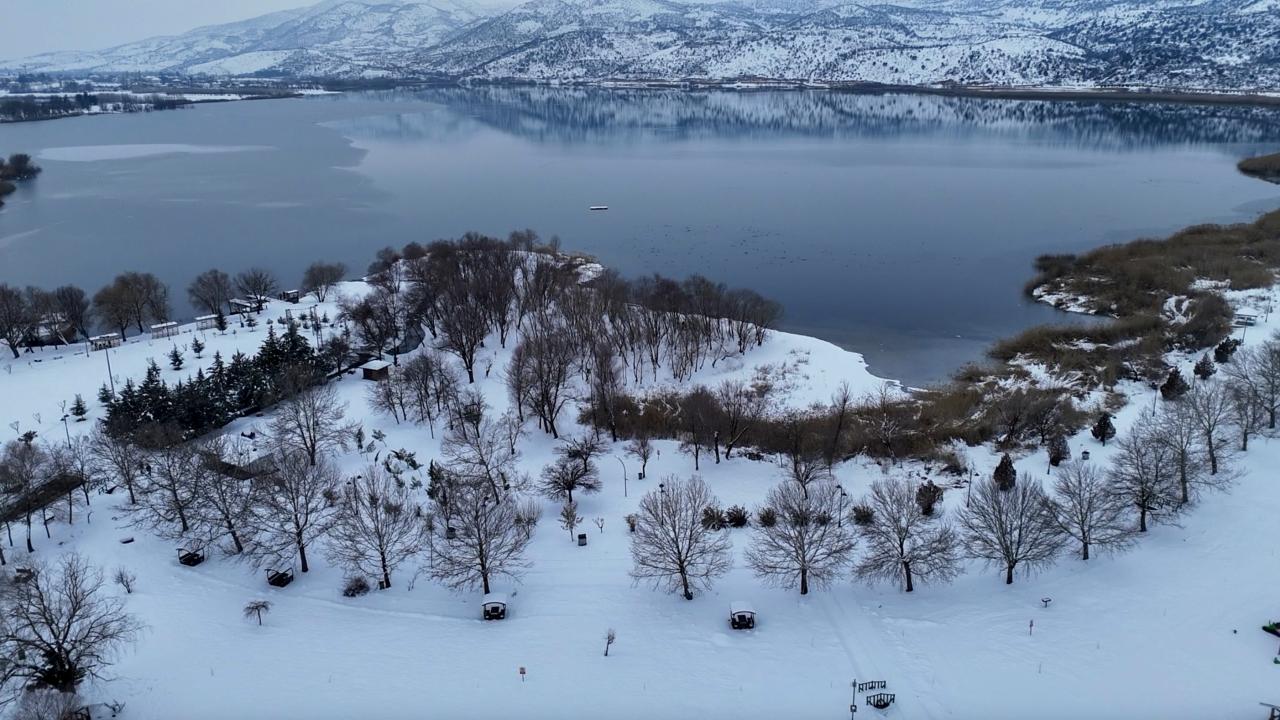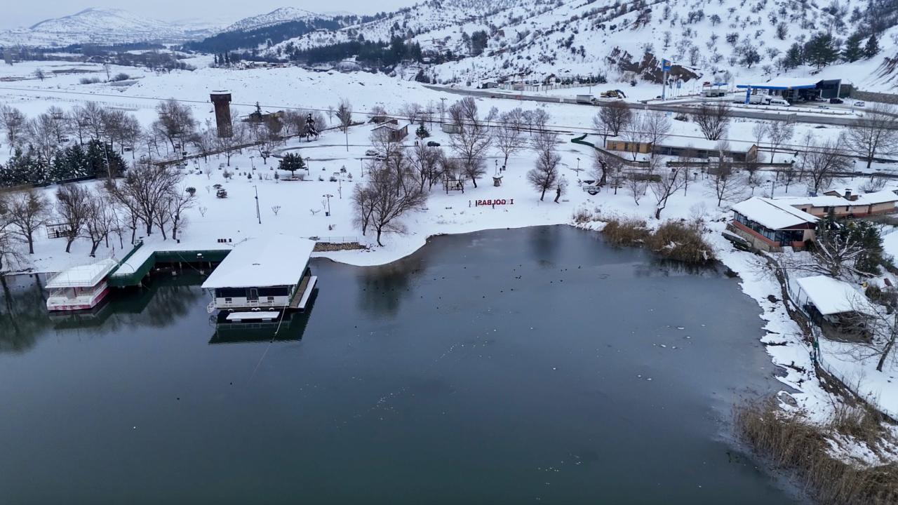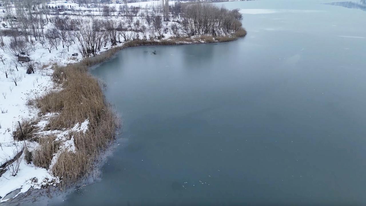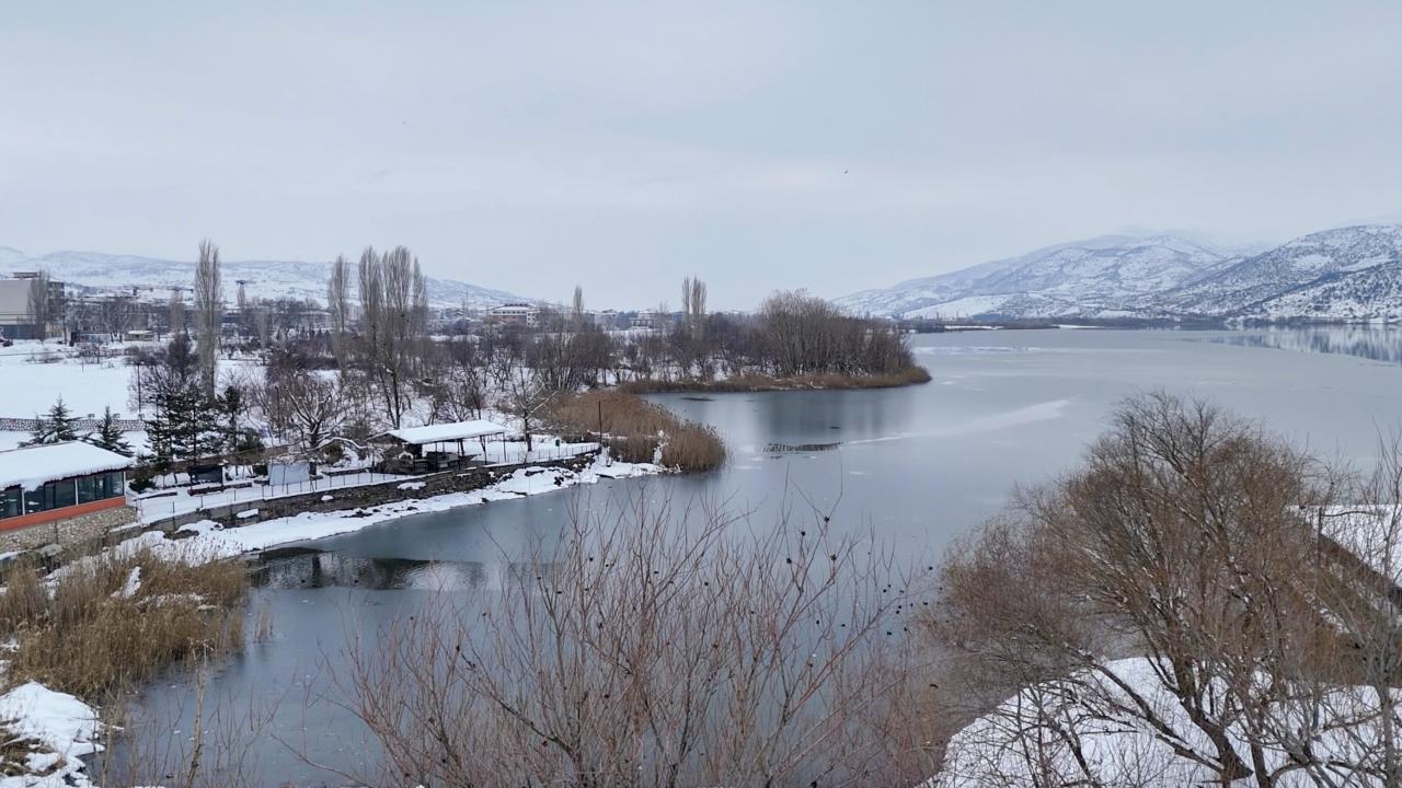 Adıyaman'ın Gölbaşı ilçesindeki `Gölbaşı Gölü`, soğuk hava nedeniyle dondu.