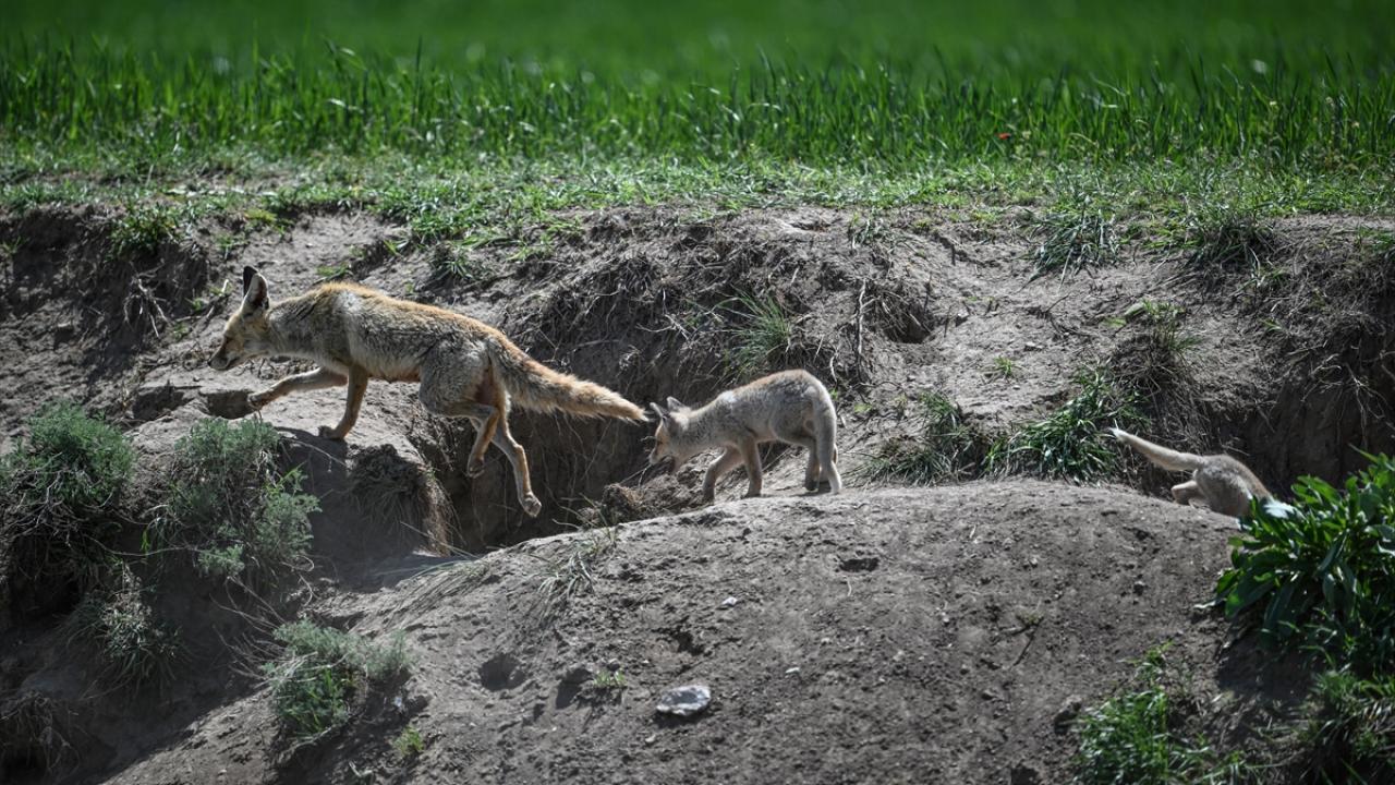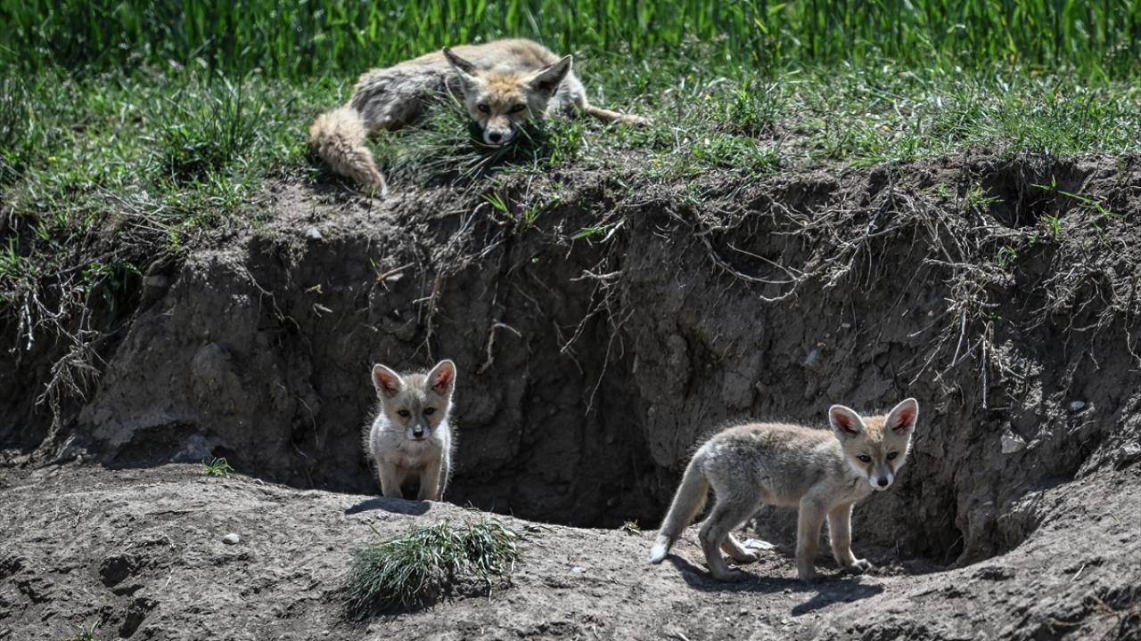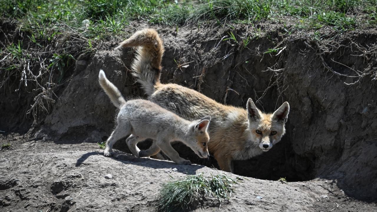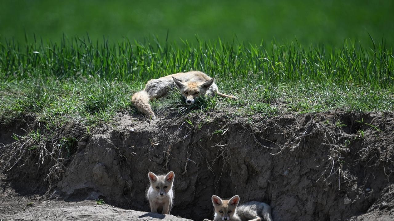 Gölbaşı ilçesi Günalan Mahallesi`ndeki kırsal alanda, yavru kızıl tilkiler anneleriyle birlikte yuvalarında görüntülendi.