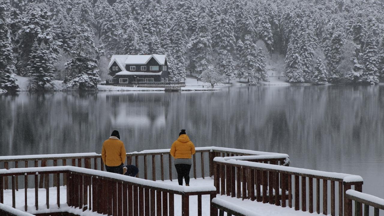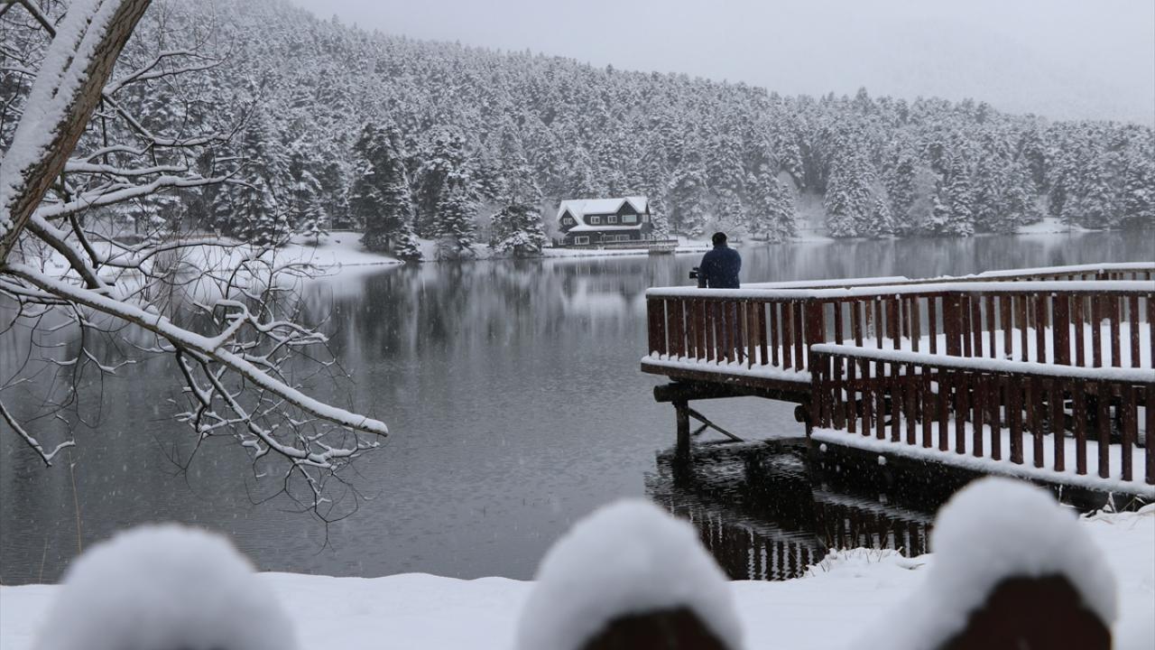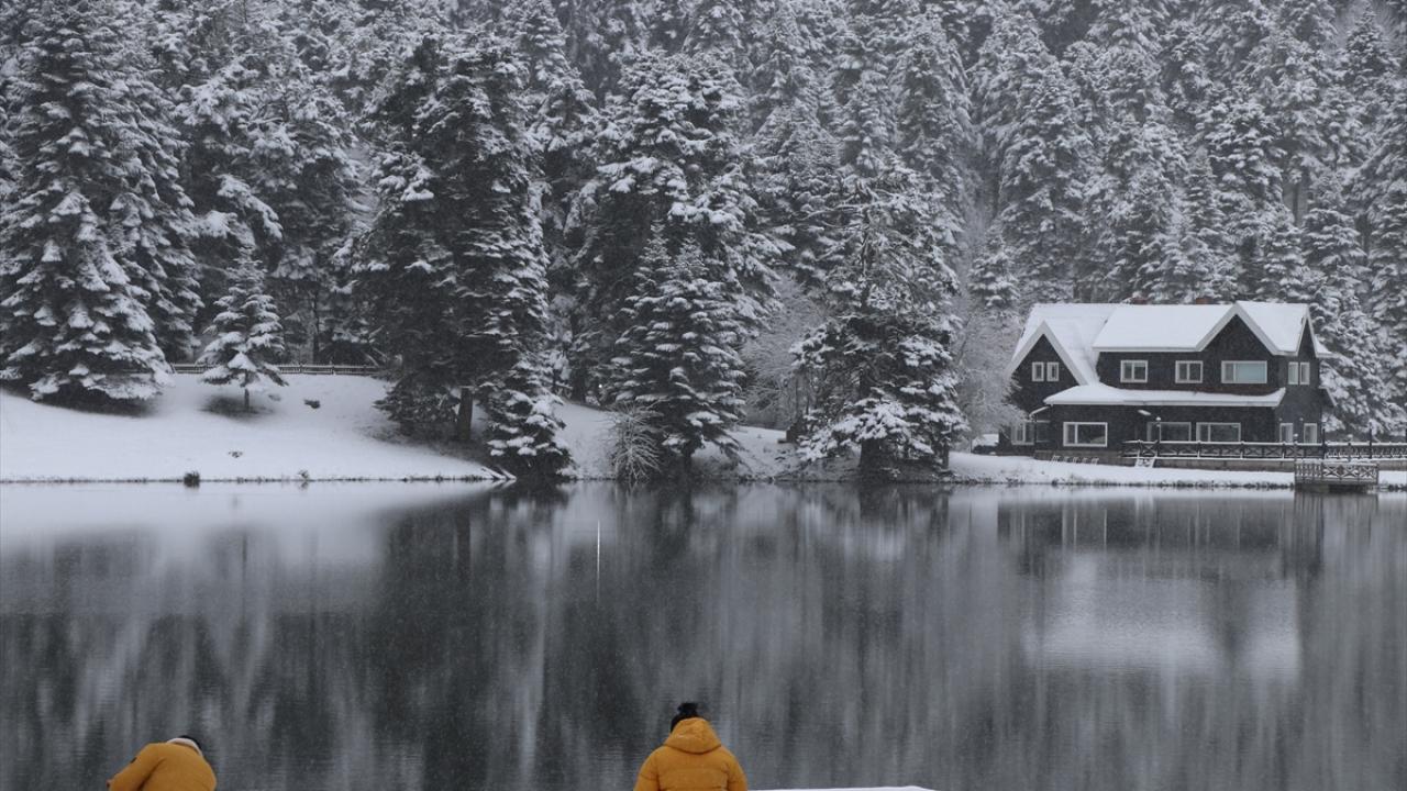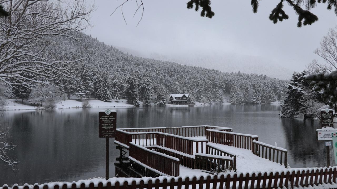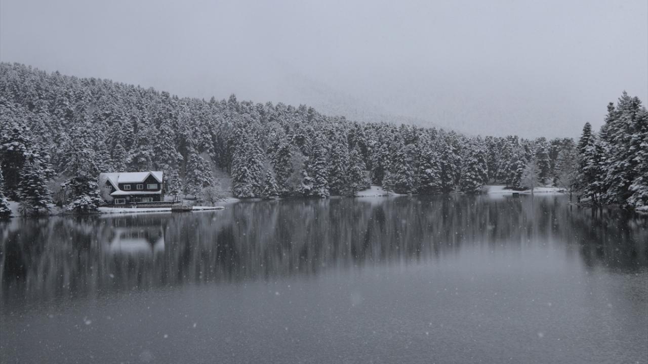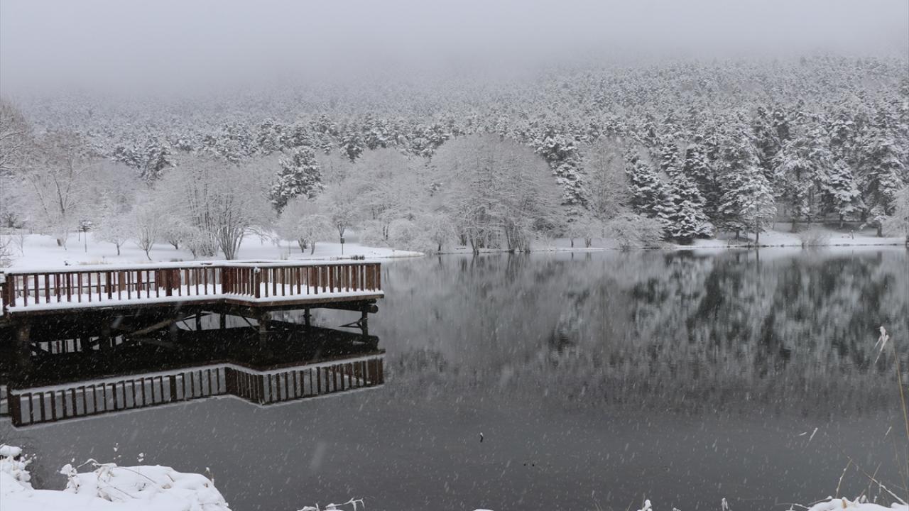 Bolu'nun doğal güzellikleri ile ünlü Gölcük Tabiat Parkı, kar yağışıyla birlikte beyaza büründü.