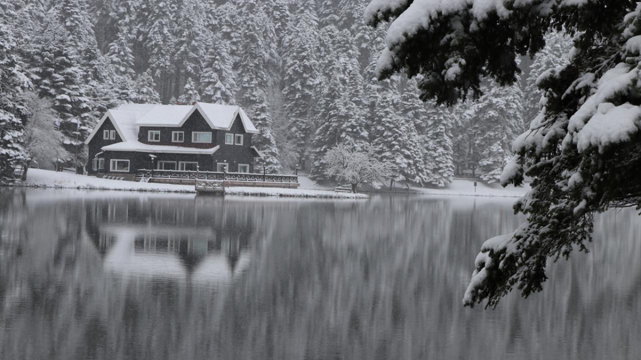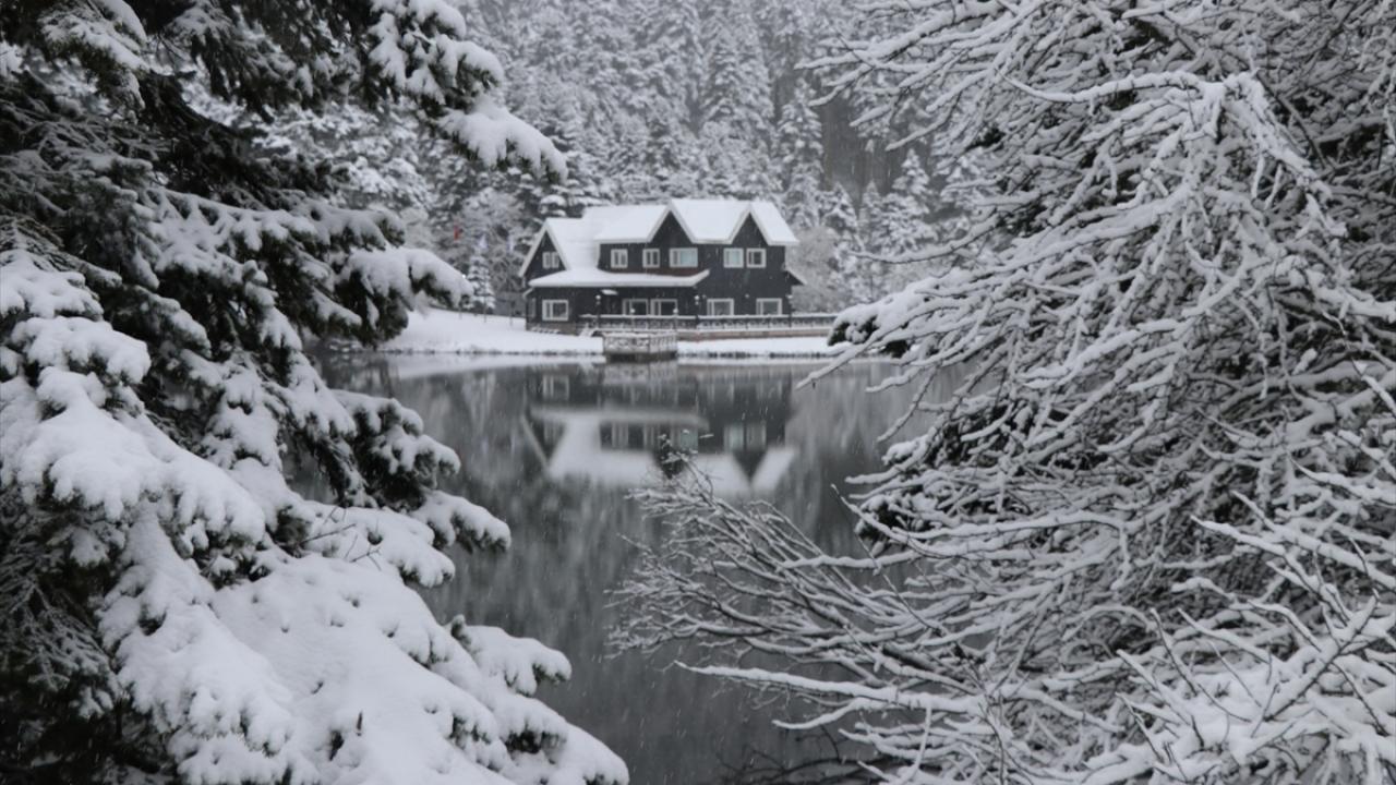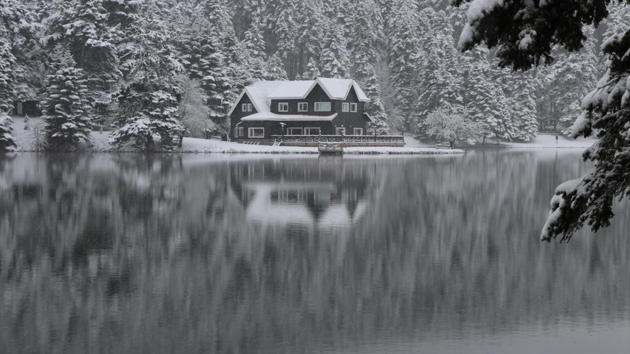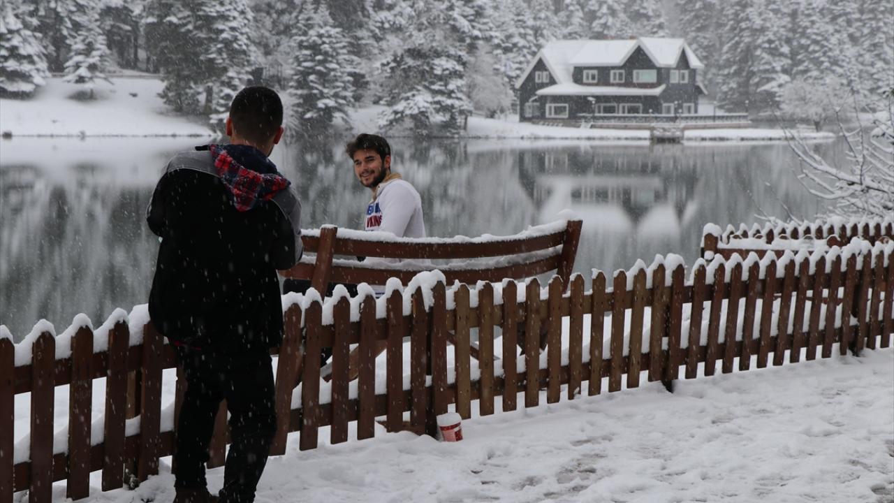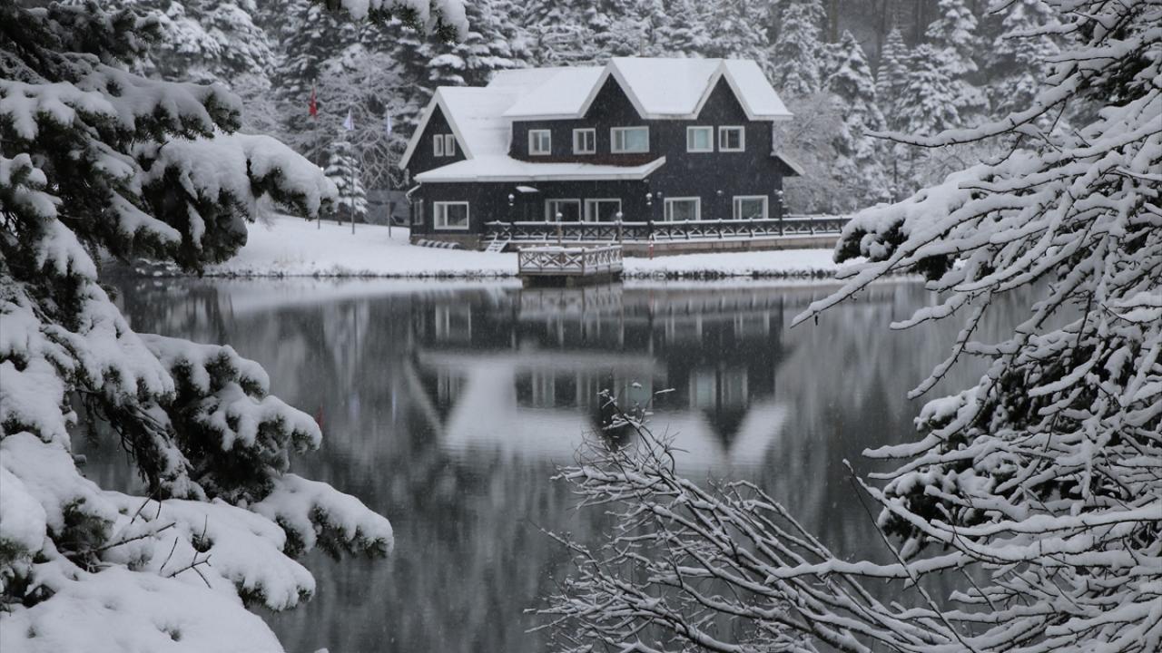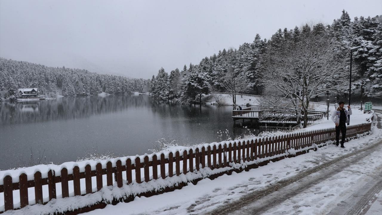 Bolu'nun doğal güzellikleri ile ünlü Gölcük Tabiat Parkı, kar yağışıyla birlikte beyaza büründü.