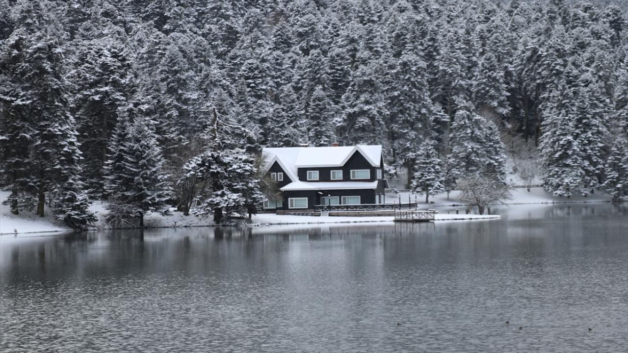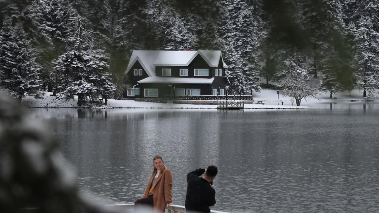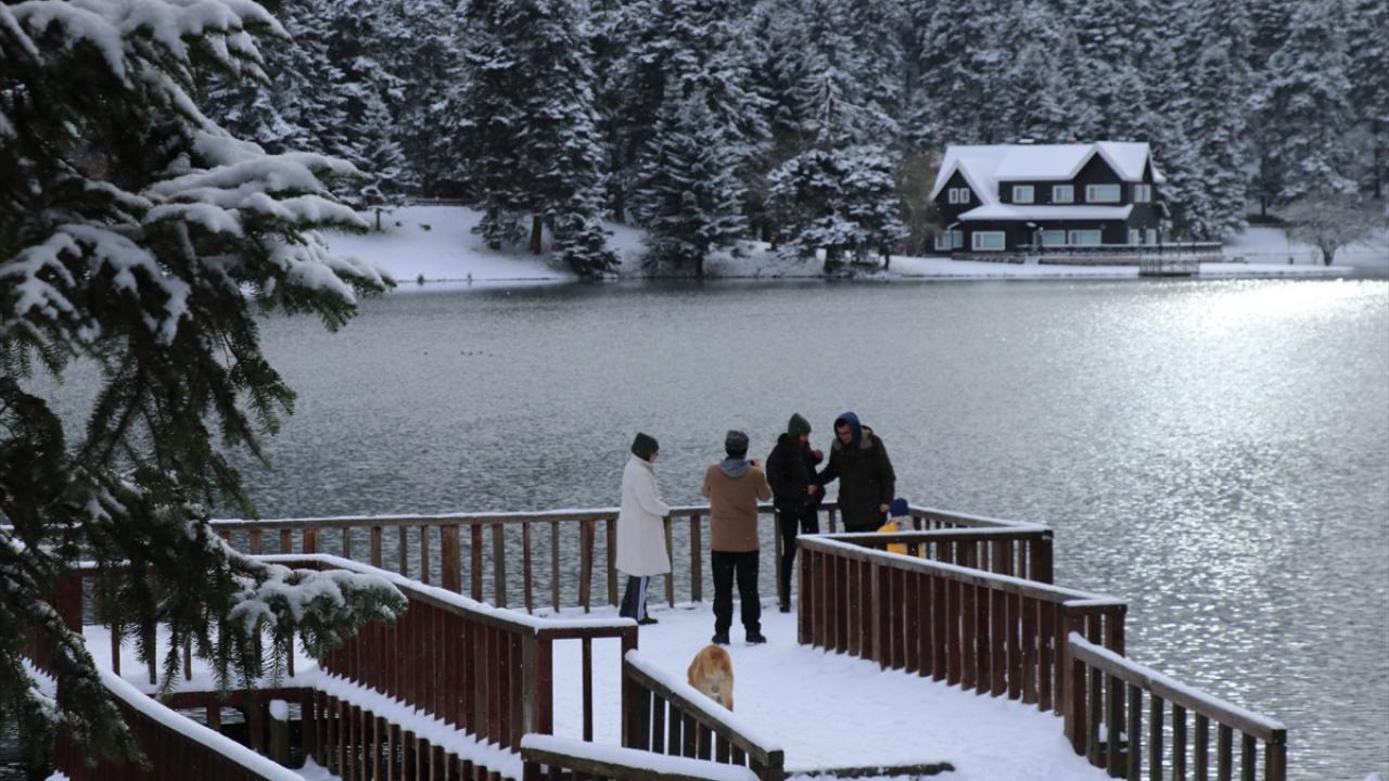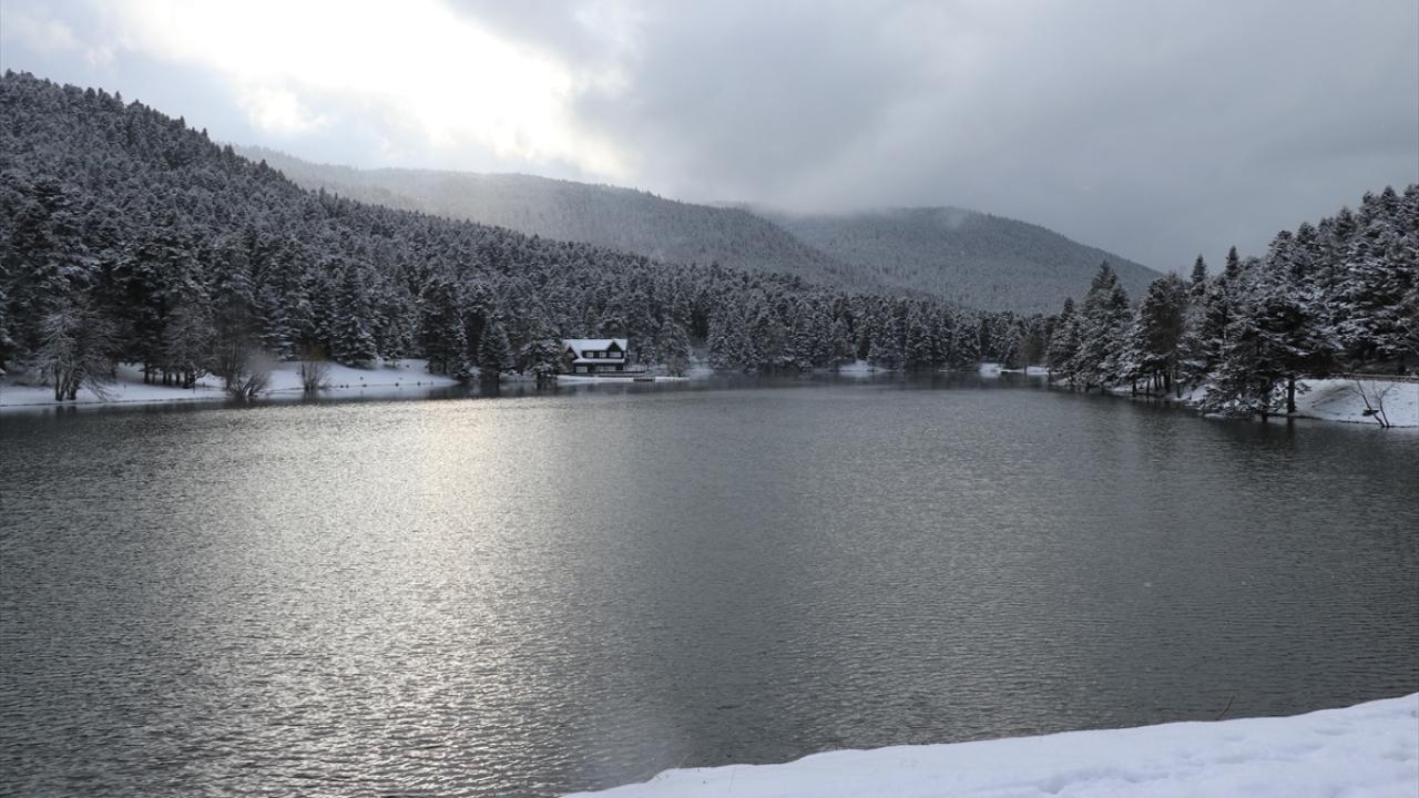 Bolu'nun doğal güzellikleri ile ünlü Gölcük Tabiat Parkı, kar yağışının ardından beyaza büründü.