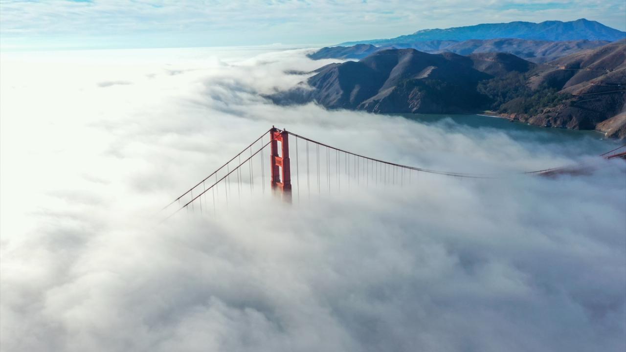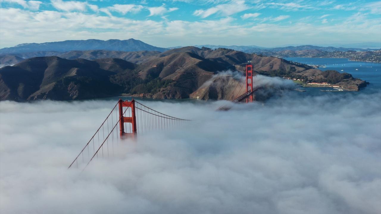 San Francisco şehrinin simge yapılarından Golden Gate Köprüsü, etkili olan sis ile güzel görüntüler oluşturdu.