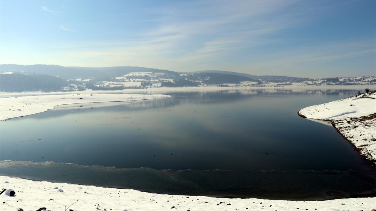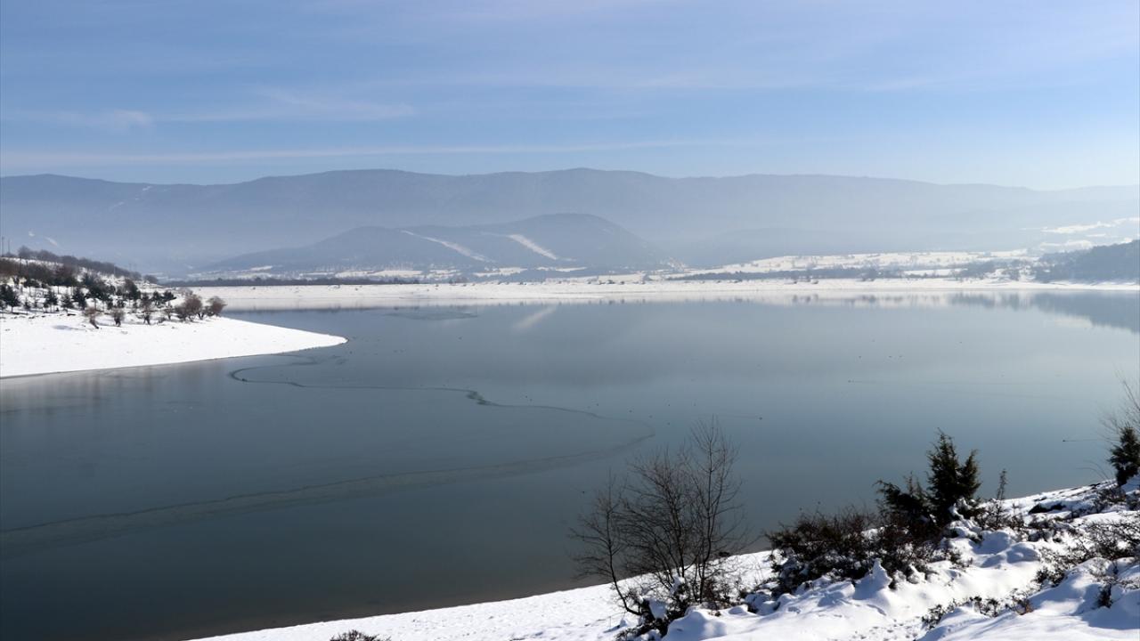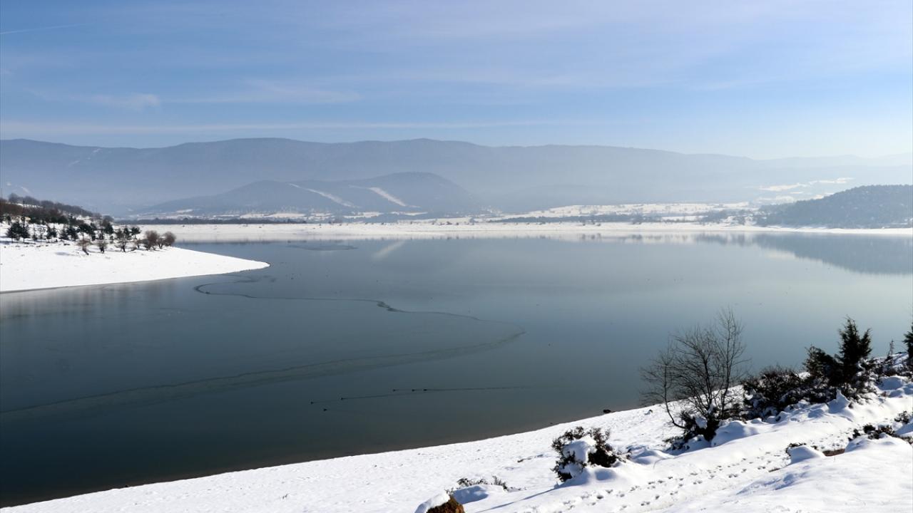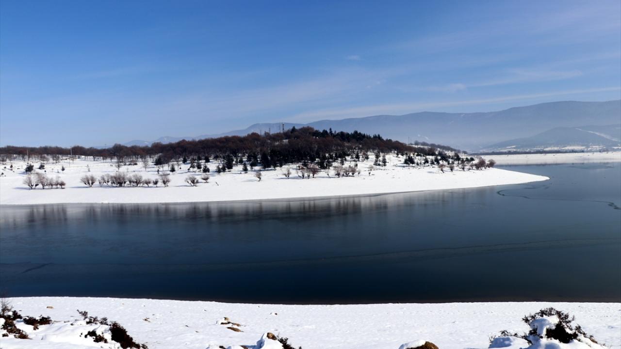 'Beyaz gelinliği'ni giyen Çıldır Gölü güzel manzaralar sunuyor