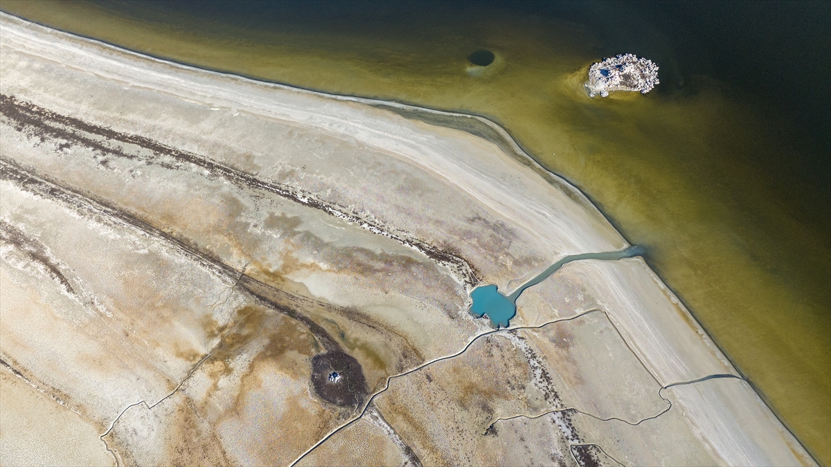 Suyu alkali ve tuzlu, zengin biyolojik çeşitliliğe sahip Yarışlı Gölü, görüntüsüyle dikkati çekiyor.