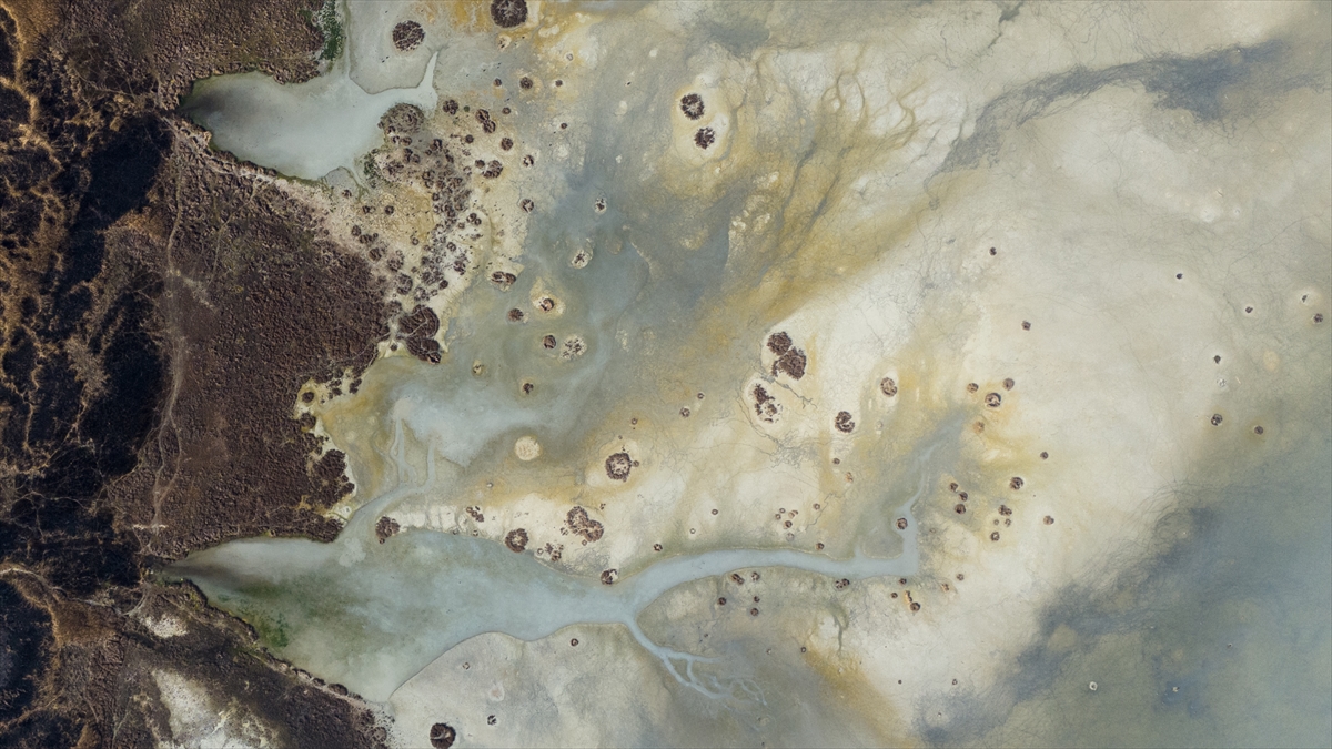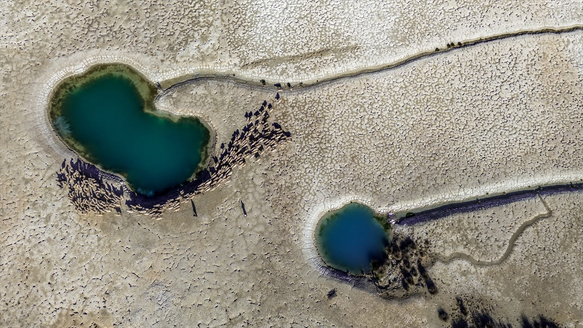 Yörenin önemli merkezleri arasında yer alan ancak 2021 yazında tamamen kuruyan ve sonrasında kısmen su tutan göl, havadan görüntülendi.