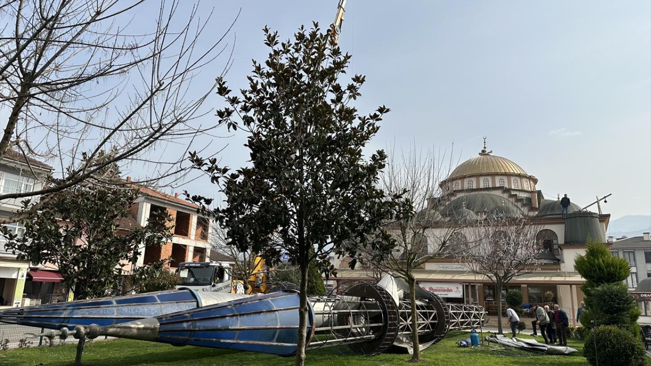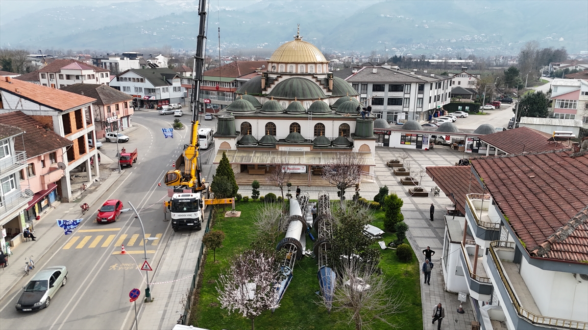 Daha önce meydana gelen şiddetli rüzgar ve fırtınalarda beşik gibi sallanarak tehlike arz eden minareleri değiştirme kararı alan Cami Derneği yetkilileri günümüz mimarisine uygun daha sağlam bir minare yapılacağını bildirdi.