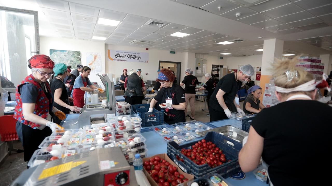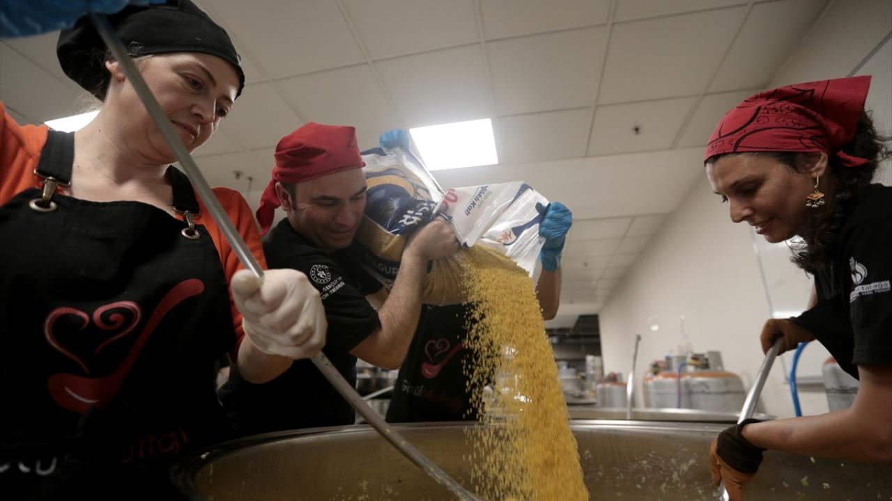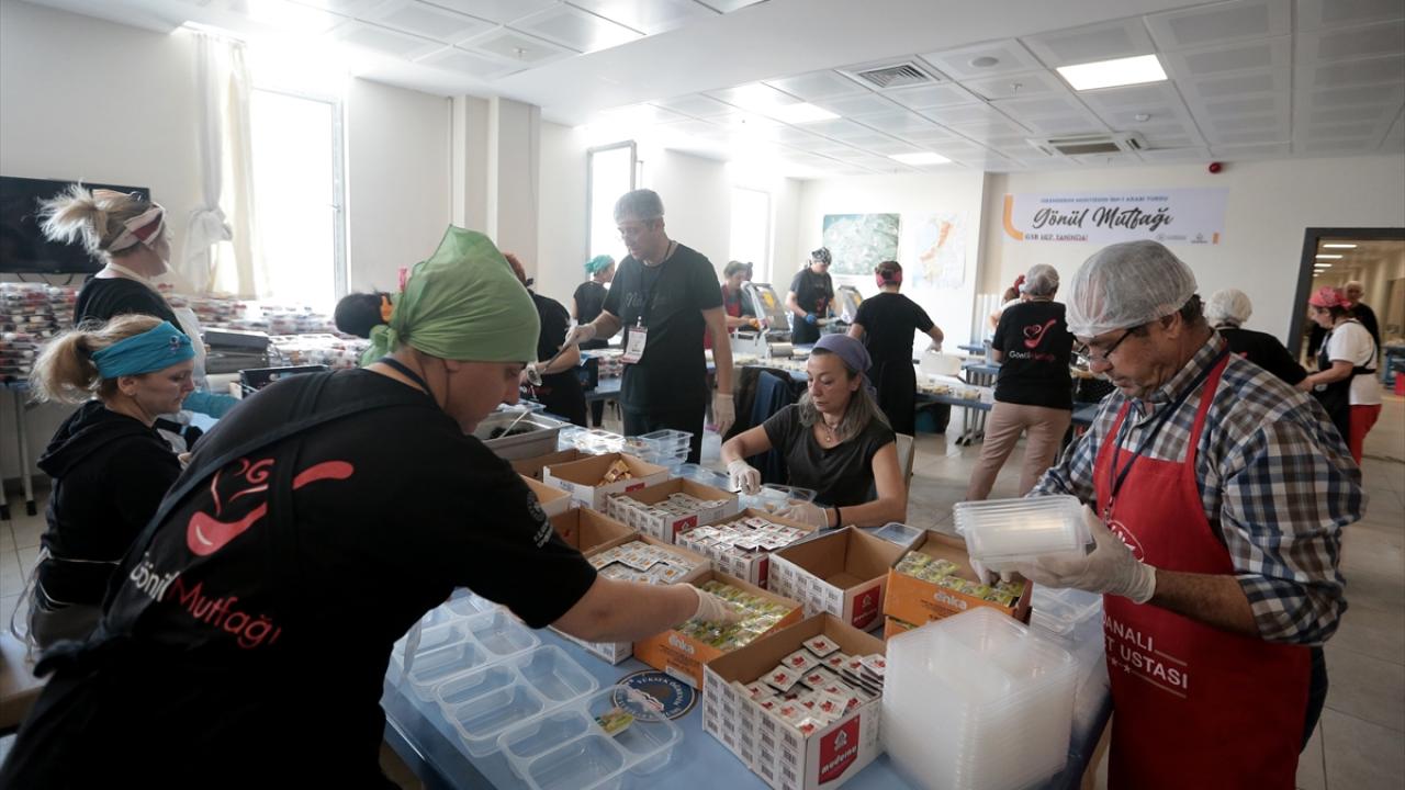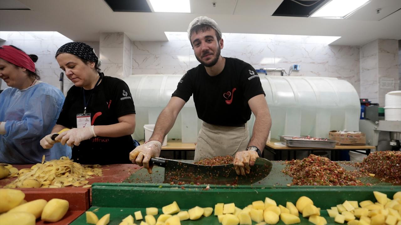 Hatay'ın İskenderun ilçesinde şefler Türev Uludağ ve Ebru Baybara Demir'in öncülüğünde yurt içi ve dışından farklı meslek gruplarına mensup gönüllülerin katılımıyla afetzedeler için günde 200 bin kap yemek çıkarılıyor.
